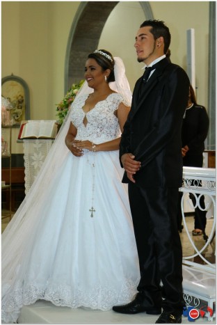 A noiva veste um lindo vestido da Noivas Cirlene.