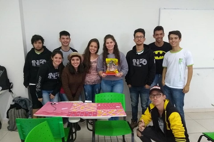 Desenvolveram uma apostila de revisão sobre os conteúdos de Bioquímica e Citologia. Apresentaram para INFO E e INFO F um jogo envolvendo os conceitos, utilizando maquete para facilitar a assimilação.