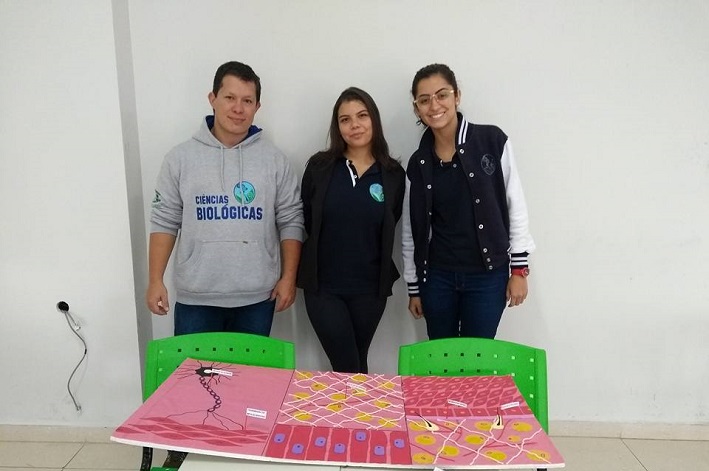 Desenvolveram uma apostila de revisão sobre os conteúdos de Histologia e Citologia. Apresentaram para INFO E e INFO F um jogo envolvendo os conceitos, utilizando maquete para facilitar a assimilação.