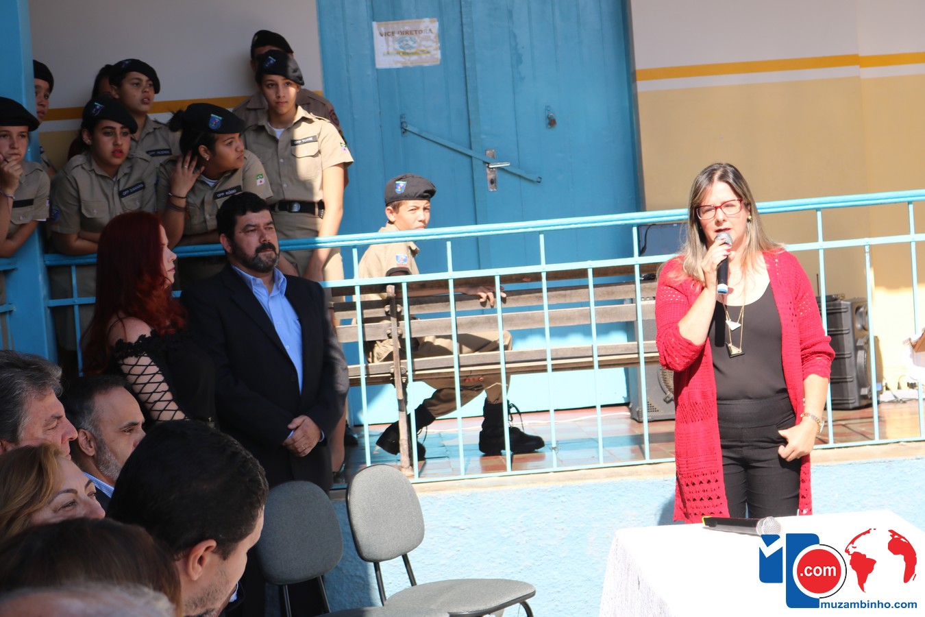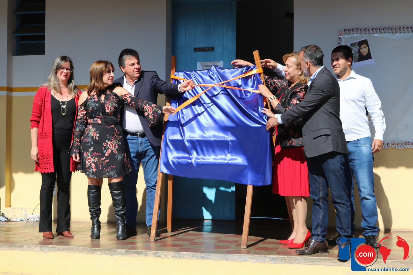 Estiveram presente na solenidade os representantes do Governo estadual, além do Prefeito e Assessores. A Diretora Heloísa falou de sua satisfação na conclusão desta etapa e que espera a liberação de mais verba para a conclusão das reformas.