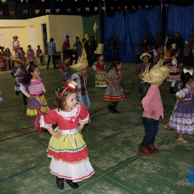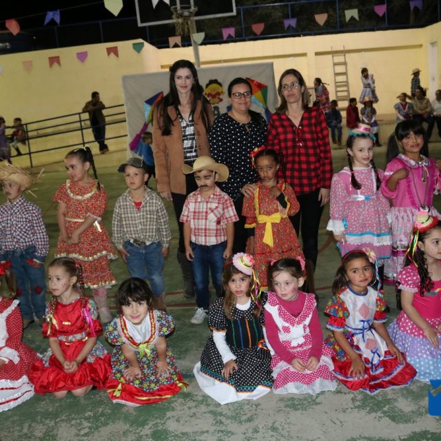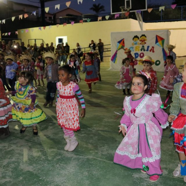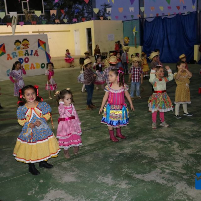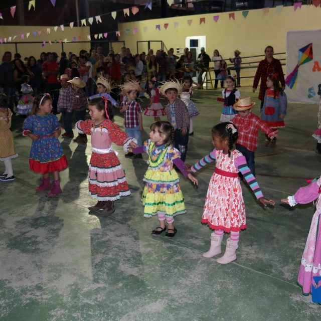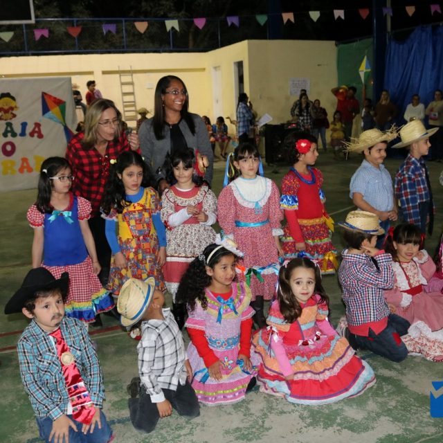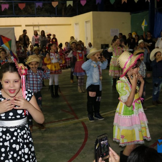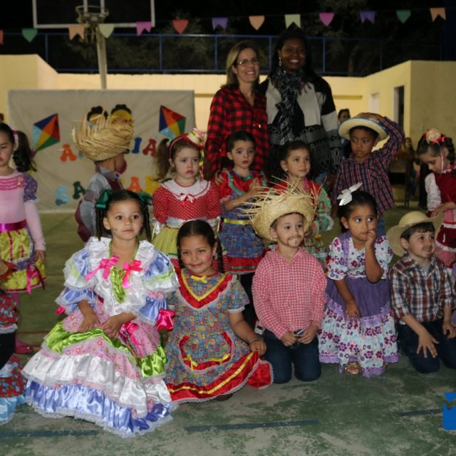 As crianças estavam eufóricas correndo de um lado para o outro, e no momento das apresentações elas se desdobravam, enquanto os pais, avós e amigos se encantavam, tiravam fotos e filmavam para guardar estes momentos inesquecíveis.