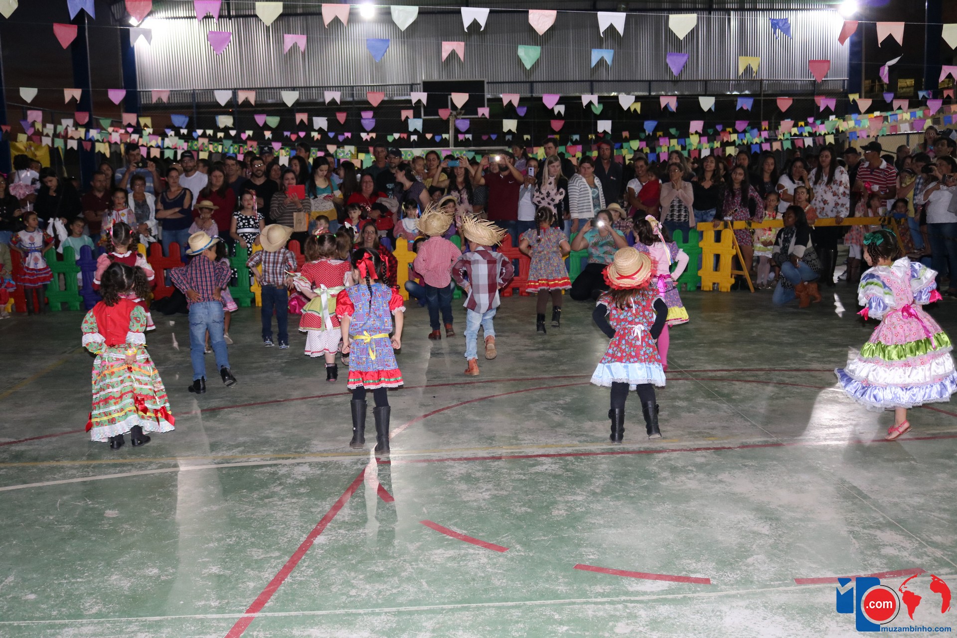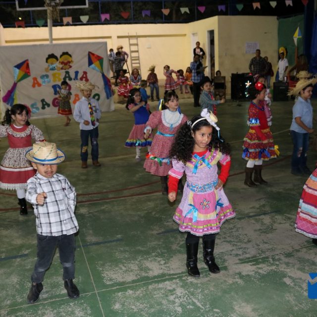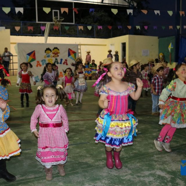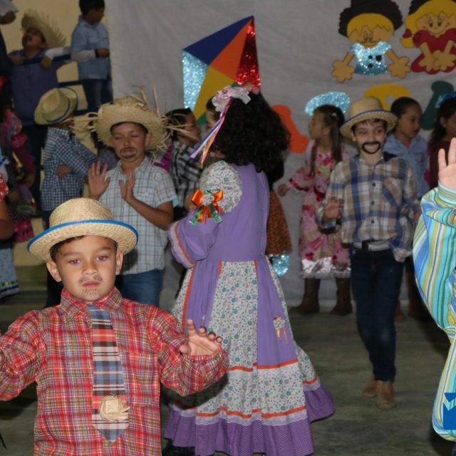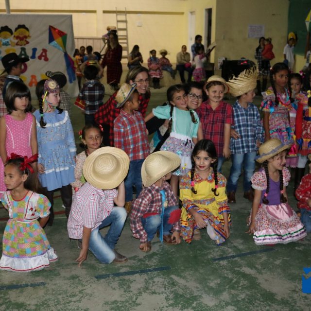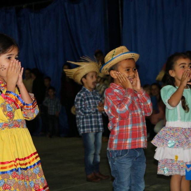 As crianças estavam eufóricas correndo de um lado para o outro, e no momento das apresentações elas se desdobravam, enquanto os pais, avós e amigos se encantavam, tiravam fotos e filmavam para guardar estes momentos inesquecíveis.