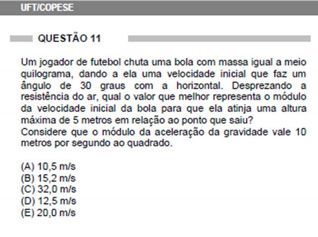 Kevork indicou que, geralmente, são cinco as propostas típicas de um enunciado de vestibular envolvendo o lançamento oblíquo: