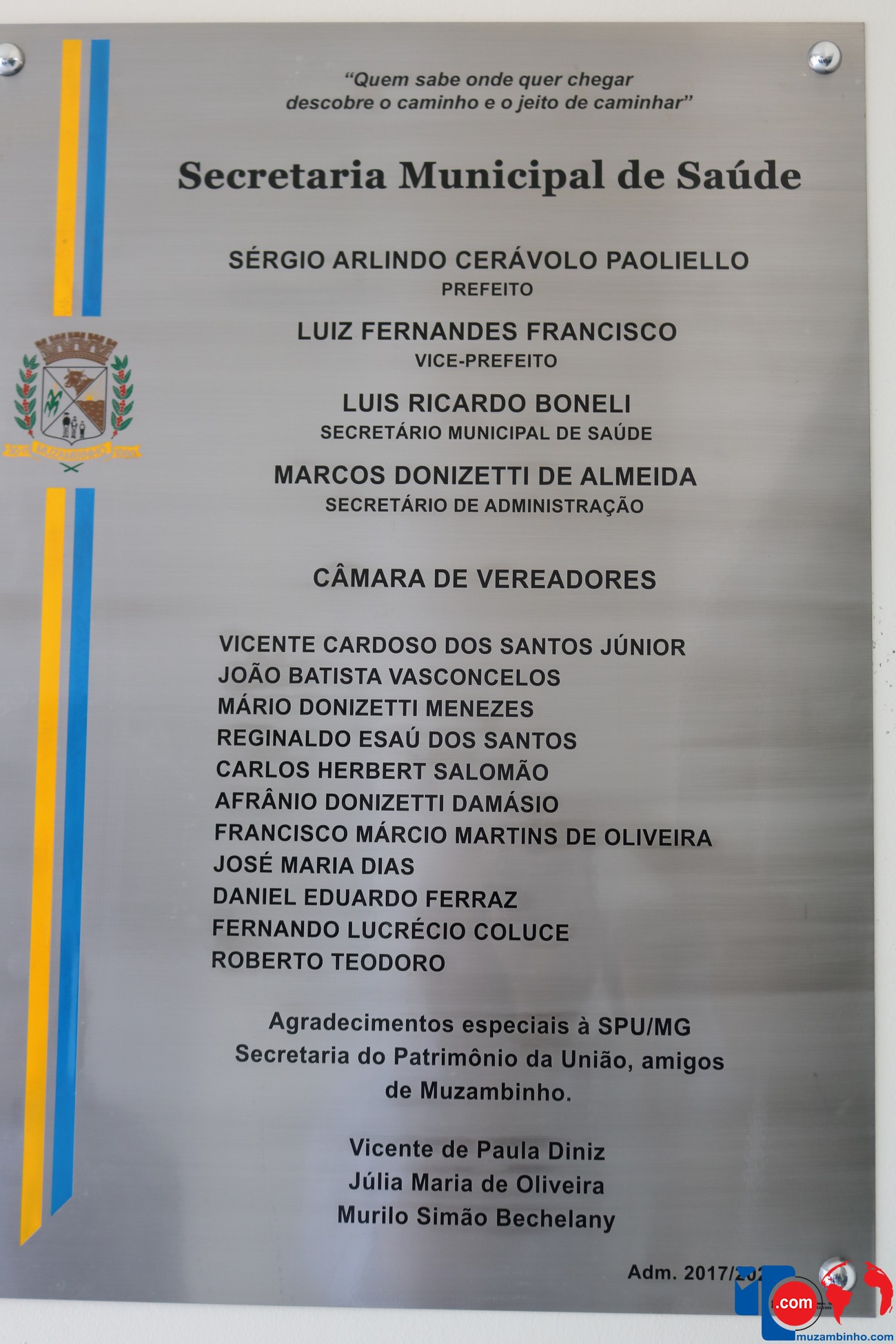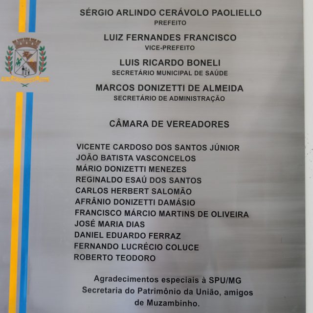 Com a instalação da Sede da Secretaria de Saúde neste Prédio, que foi passado para a Prefeitura de Muzambinho através do grande empenho do Prefeito Sérgio “Esquilo”, a municipalidade passa a contar com um Complexo de Saúde com mais de tres mil metros de área, contando com a Sede da Secretaria, Ambulatório, Centro Odontológico, Farmácia, AVMCC e outras instalações que serão construídas para dar mais dignidade e qualidade na saúde dos muzambinhenses.