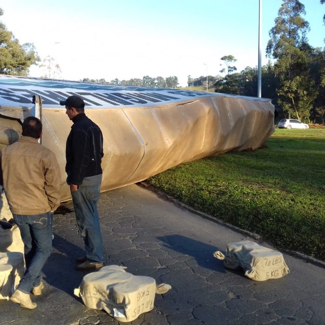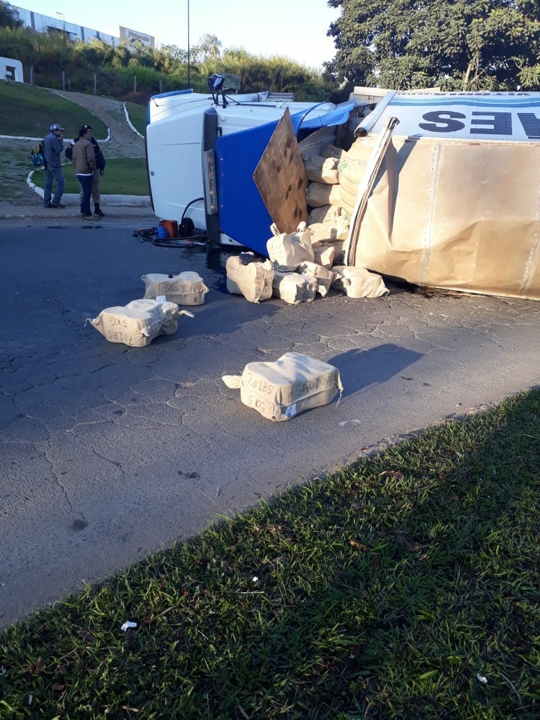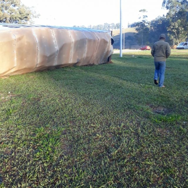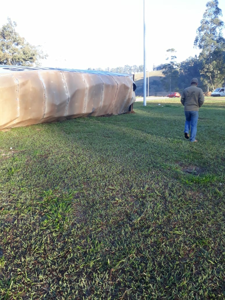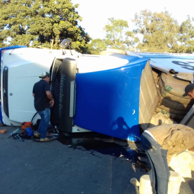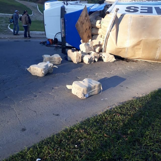 Carreta tombou na Manhã desta terça-feira, 21/08.