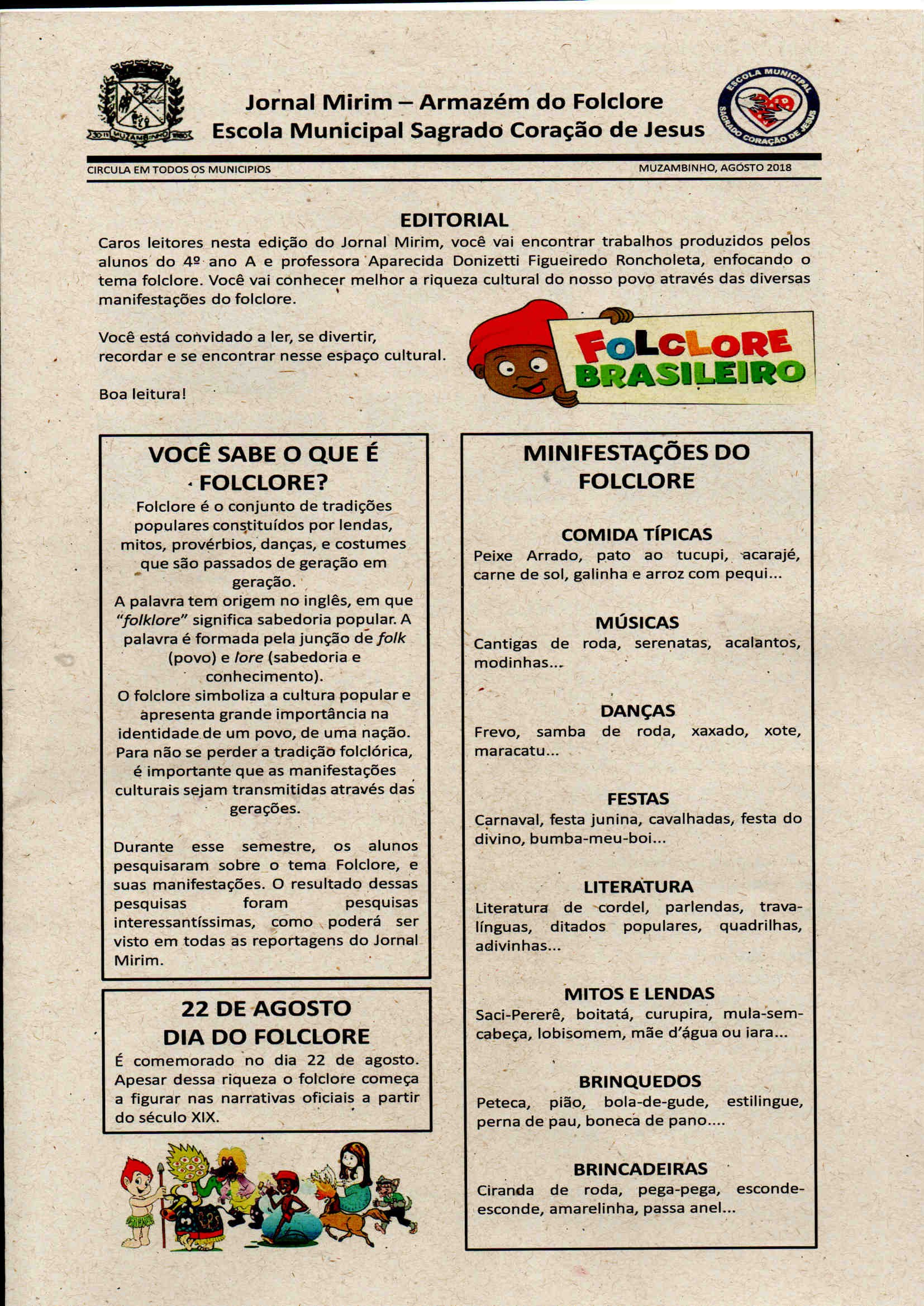 Escola Municipal Sagrado Coração de Jesus e alunos do 4º ano trazem nesta edição o tema Folclore Brasileiro.