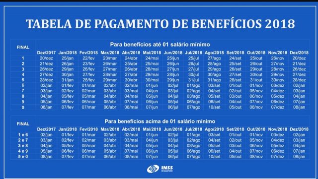 O depósito será realizado na folha mensal de pagamentos do INSS, entre os dias 27 de agosto e 10 de setembro, conforme a Tabela de Pagamentos de Benefícios 2018 abaixo: