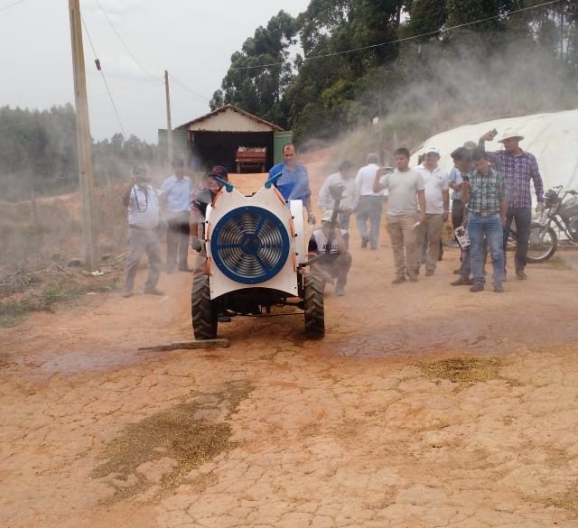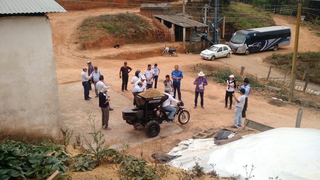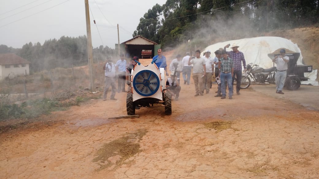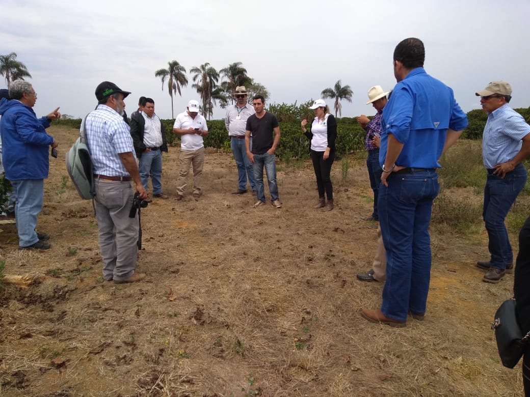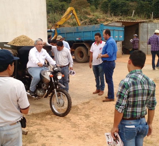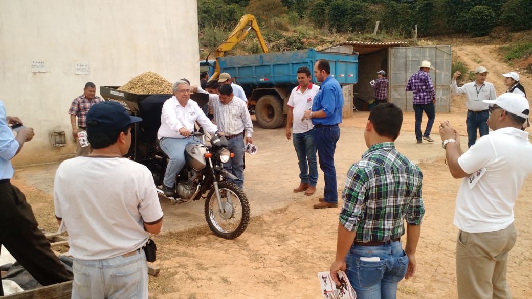 Em seguida deslocaram até a propriedade da família Miranda, onde o Sr Antônio e seu filho Alessandro, atual presidente da Coopervitae, mostraram técnicas como espaçamentos, mecanização dos tratos culturais, manejo pós colheita, recolhimento em big bags e pesagem do café na lavoura, diminuindo custos e esforço dos trabalhadores.