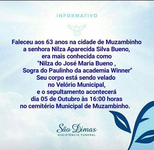 Mais Artigos AgronegócioDestaque Café em Foco, 20/04/26, Cotações e Informações da Cafeicultura DestaqueNossa CidadeSaúde Solidariedade: Clube de Doadores mobiliza dia de Doação de Sangue na Santa Casa de Muzambinho DestaqueNossa CidadePrevisão do Tempo Sem chuva e com calor: veja a previsão da semana em MuzambinhoDestaqueNossa CidadeObituárioFaleceu a senhora Nilza Aparecida Silva Bueno aos 63 anos Redação5 de outubro de 20181min0D. Nilza é mãe da Débora Bueno, esposa do Paulinho da Winner A família enlutada nossos sinceros sentimentos! Post Views: 1.548