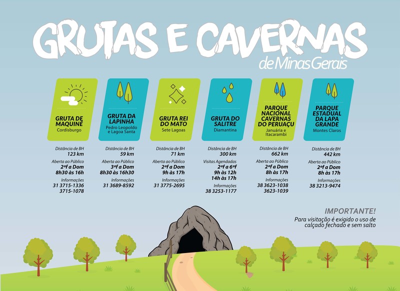 “Porém, temos outras grutas turísticas, como a Gruta do Salitre, em Diamantina, e as grutas do Parque Nacional Cavernas do Peruaçu, localizado em Januária/Itacarambi, e do Parque Estadual da Lapa Grande, em Montes Claros”, comenta o secretário de Estado de Turismo, Paulo Almada.