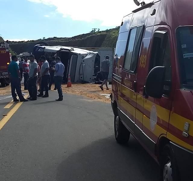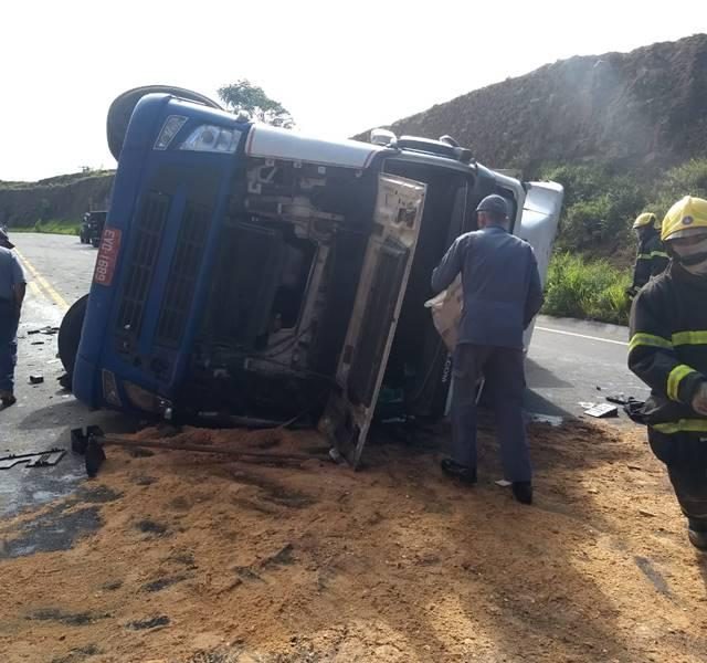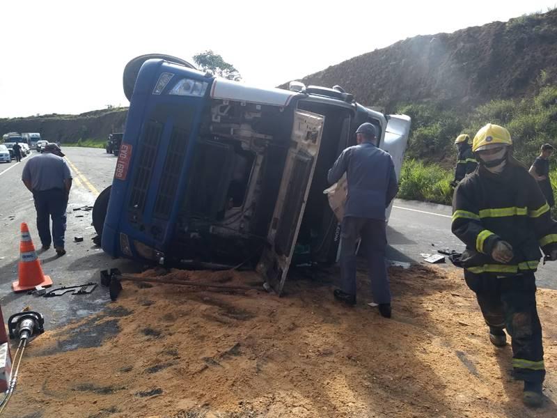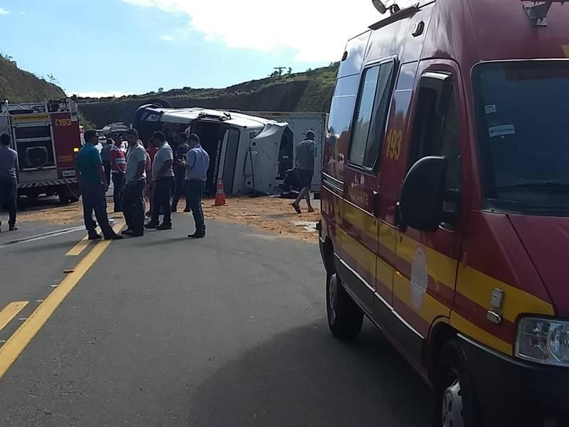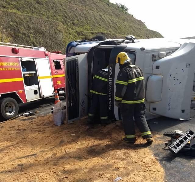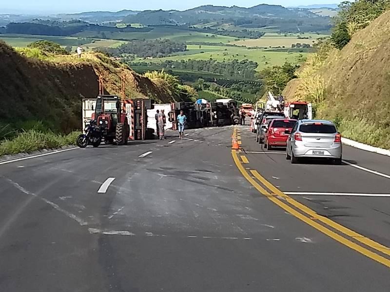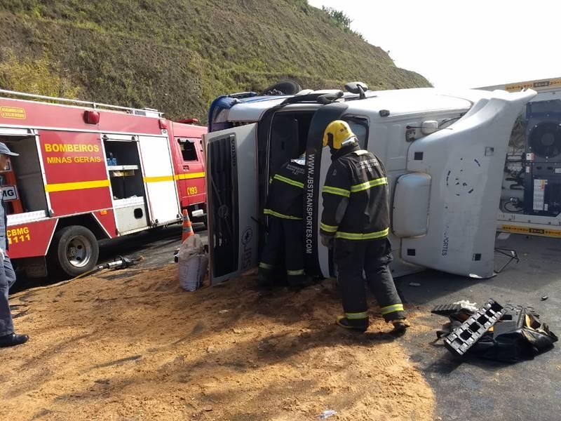 Uma carreta bitrem, de cor branca, carregada com frangos resfriados, capotou na rodovia BR 146, em São Pedro da União, nesta manhã de sexta-feira, 14 de dezembro. Ainda sem explicação, o acidente deixou ferido o condutor, que ficou preso às ferragens e foi socorrido por militares do 4º Pelotão de Corpo de Bombeiros, além do SAMU e a Polícia Militar Rodoviária de Minas Gerais.
