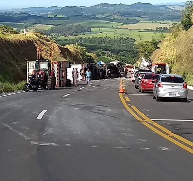 Ainda sobre os fatos, o acidente com o bitrem resultou num derramamento de óleo pela pista, sendo que os bombeiros tentam amenizar os problemas com serragem na via. Além disto, a PM interditou os dois sentidos daquela BR, o que está causando um extenso engarrafamento. Contudo, o tráfego será liberado assim que o guincho desobstruir a passagem. Vale lembrar que naquelas mesmas imediações já foram registradas várias ocorrências de capotamentos, entre outros, inclusive com perda de vidas humanas.