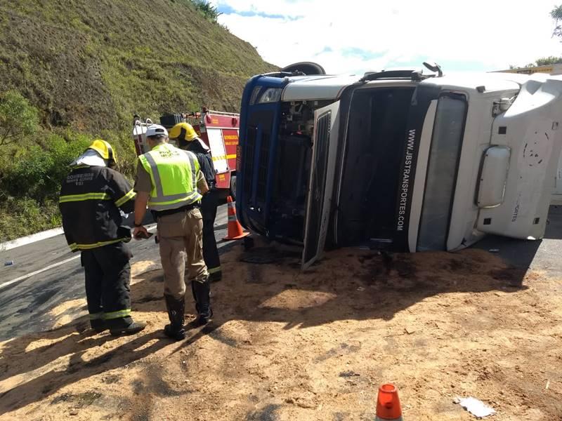 Motorista fica preso às ferragens após bitrem tombar na BR 146