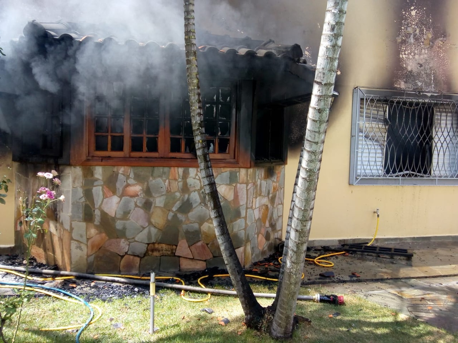 Pelo menos três cômodos de uma casa foram destruídos por fogo nesta quinta-feira (20) em Poços de Caldas. As chamas começaram em dois cilindros de gás na cozinha e se espalharam também para o quarto e um escritório.
