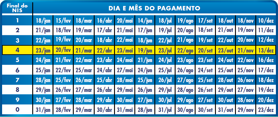 Quem possuir o cartão com final 1 pode sacar no primeiro dia de pagamento, enquanto aqueles com o final dois podem resgatar no segundo dia de pagamento, e assim por diante, conforme a seguinte tabela:
