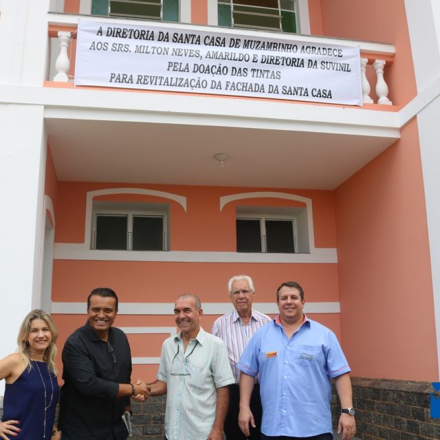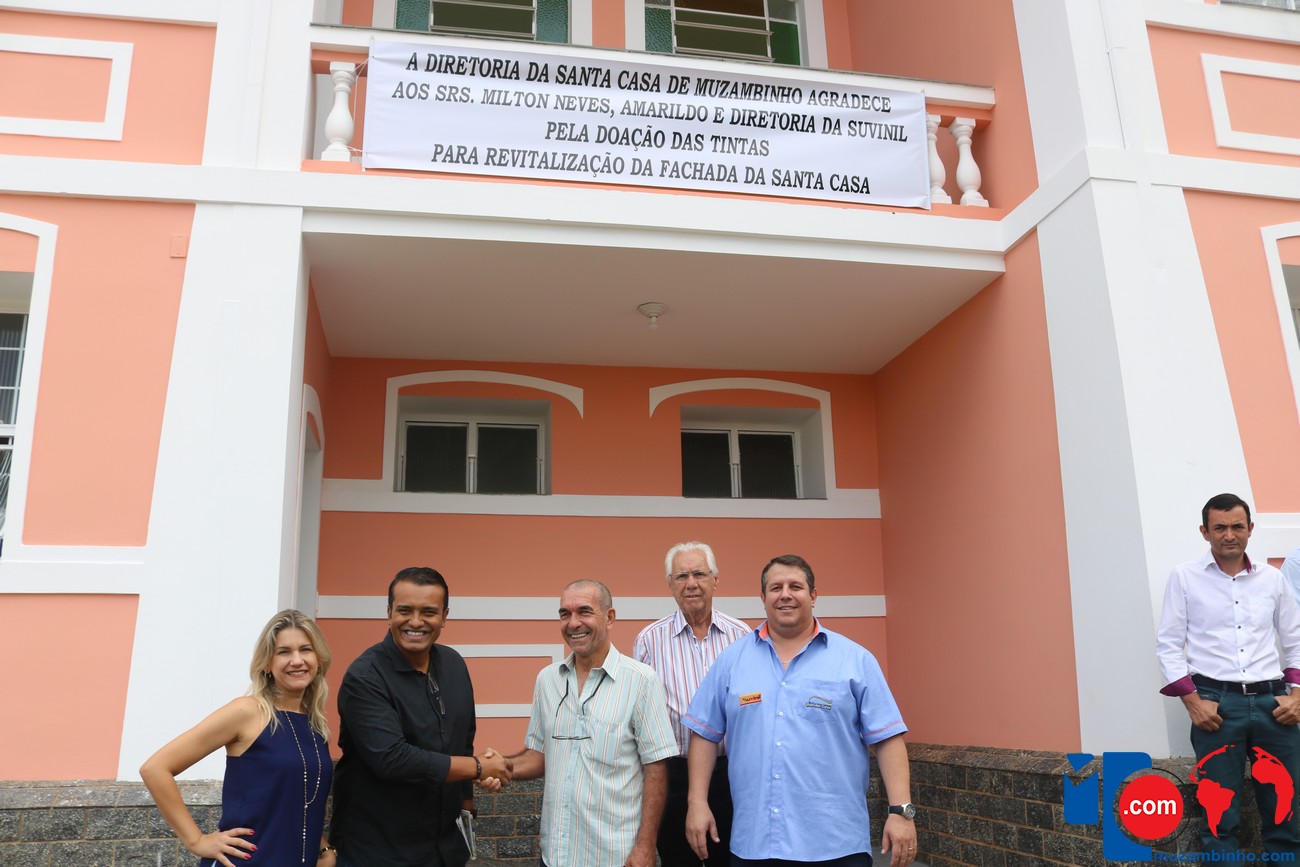 “No início do ano de 2018 a direção da Santa Casa de Muzambinho foi procurada pelo empresário muzambinhense Amarildo, proprietário da loja Cometa Tintas, o qual informou que havia sido comunicado por um representante da empresa Suvinil, que a cidade de Muzambinho havia sido contemplada com o material (tintas) para a pintura externa de um prédio na cidade, a pedido do também muzambinhense Milton Neves. Após uma análise o empresário Amarildo indicou o Prédio da Santa Casa, já que o mesmo é uma entidade que atende toda comunidade muzambinhense. Representantes da empresa Suvinil realizaram uma visita para fazer o levantamento de toda tinta necessária, autorizando assim a doação”.