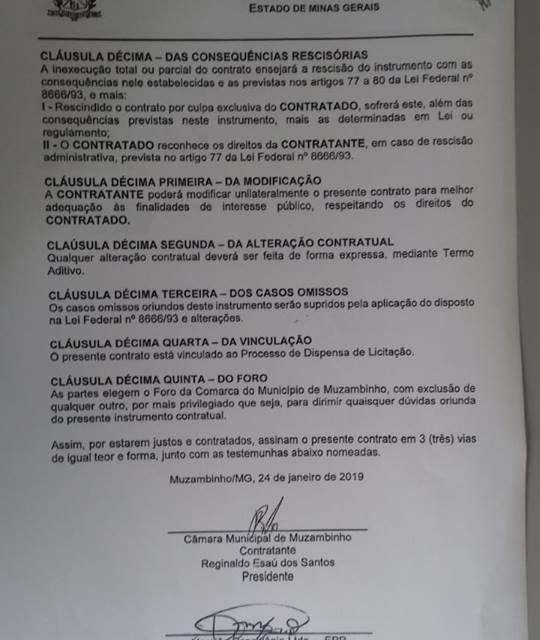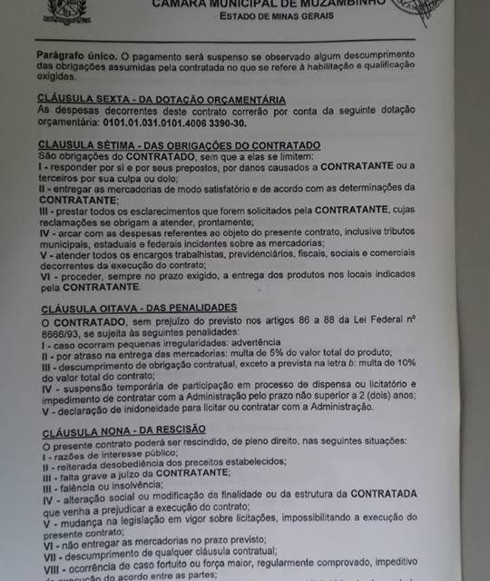 “Contrato de Compra” da Câmara de Muzambinho viraliza em Rede Social…