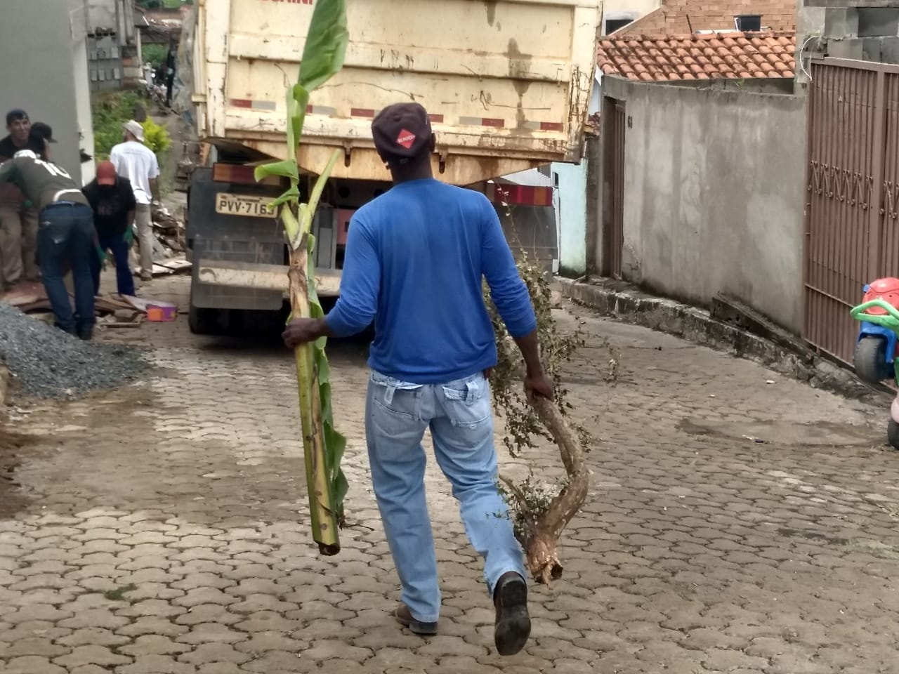 As ruas ficaram cheias de entulhos e os moradores colaboram com a ação da prefeitura , dona Nilza Bortoloti “ nem sempre a gente consegue retirar sozinha o que precisa com a ajuda dos funcionários da prefeitura fazemos uma limpeza nos nossos quintais e tiramos o que precisa,”fala entusiasmada depois que retirou do quintal tabuas e madeiras que não usava mais.