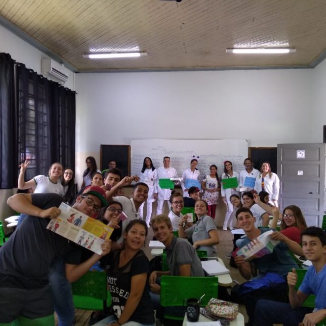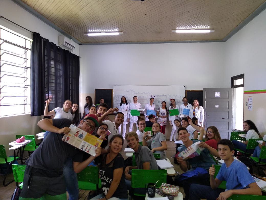 Como as ações de promoção de saúde estão inseridas na prática formativa, educativa e de assistência em saúde, os alunos foram orientados pelo corpo docente na confecção de cartazes e na elaboração de orientações para que a comunidade escolar se envolvesse na proposta de mudança de comportamento de risco.