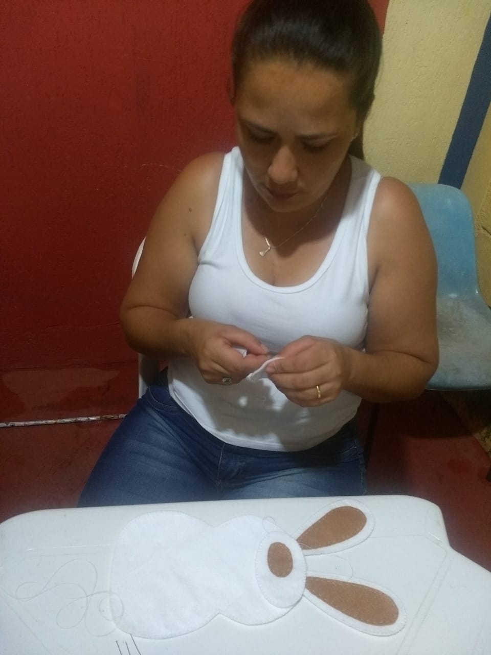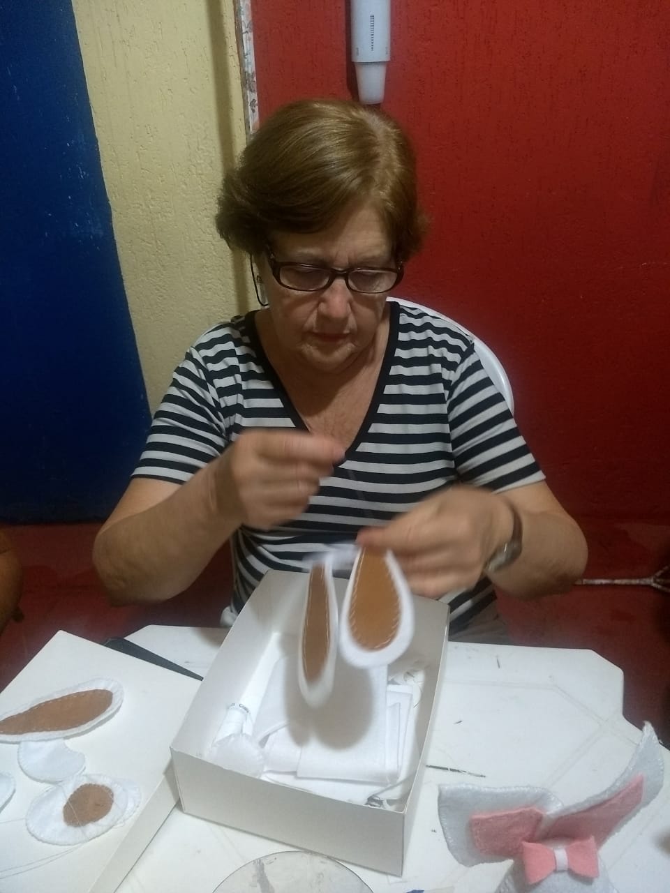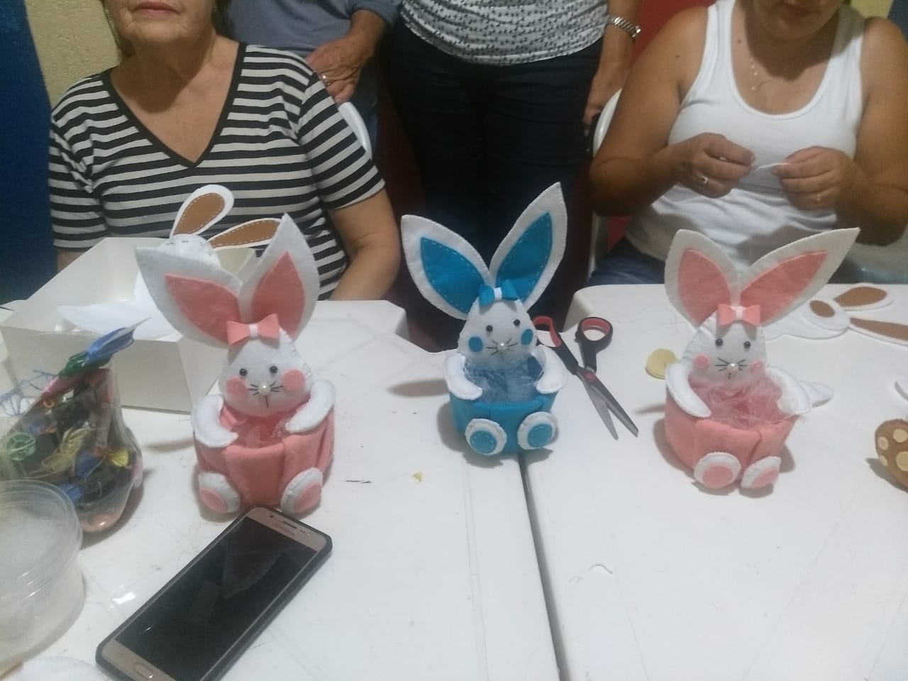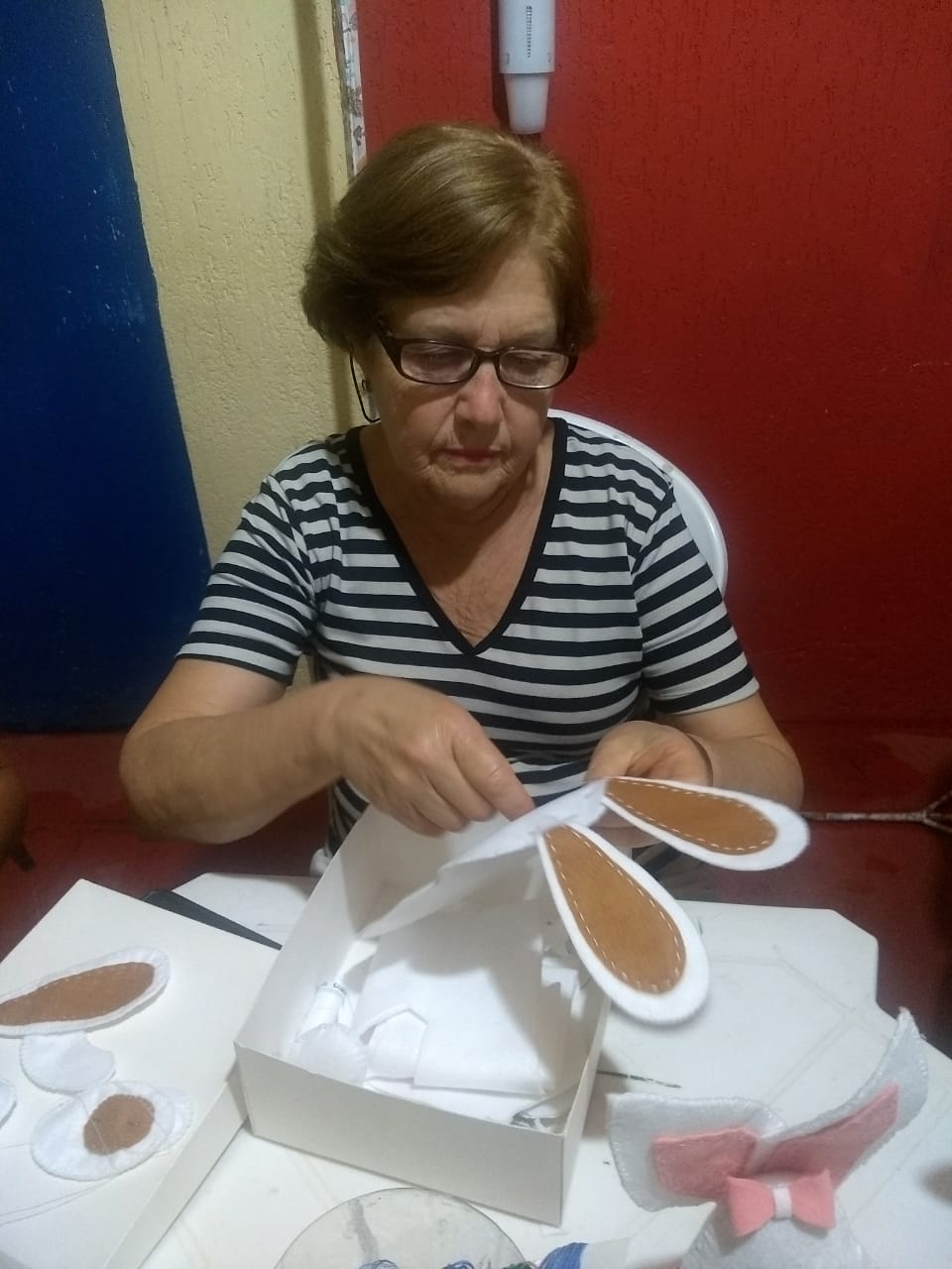 Também com o tema da Páscoa esta sendo realizada a oficina de feltro. Para Cristina a oportunidade foi incrível “com o que aprendi fiz o tema da festa do mês do meu neto, foi um sucesso, agradeço a oportunidade que a prefeitura está proporcionando”.