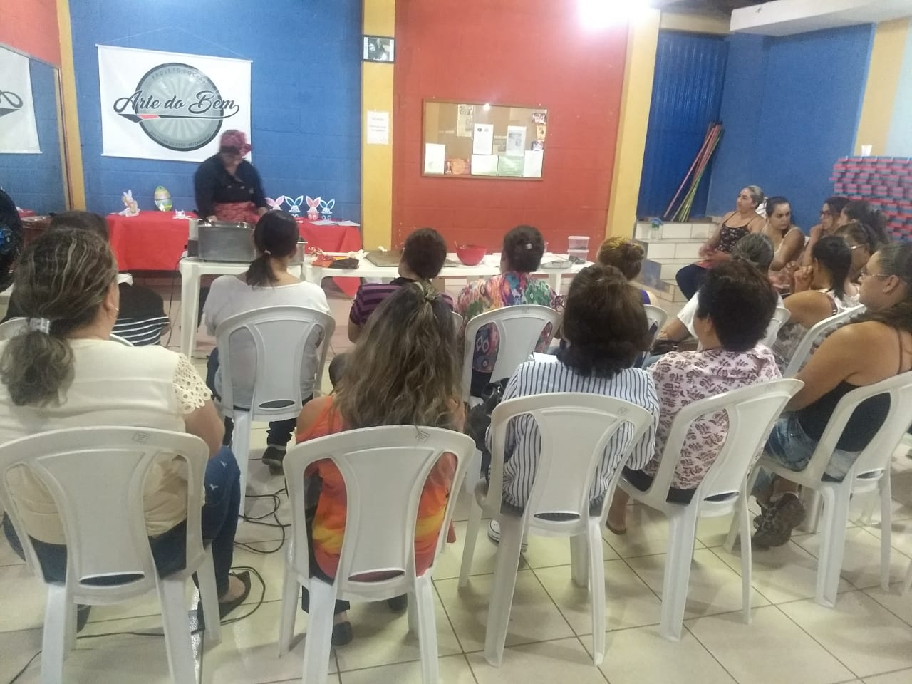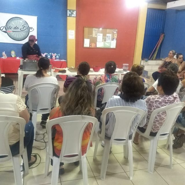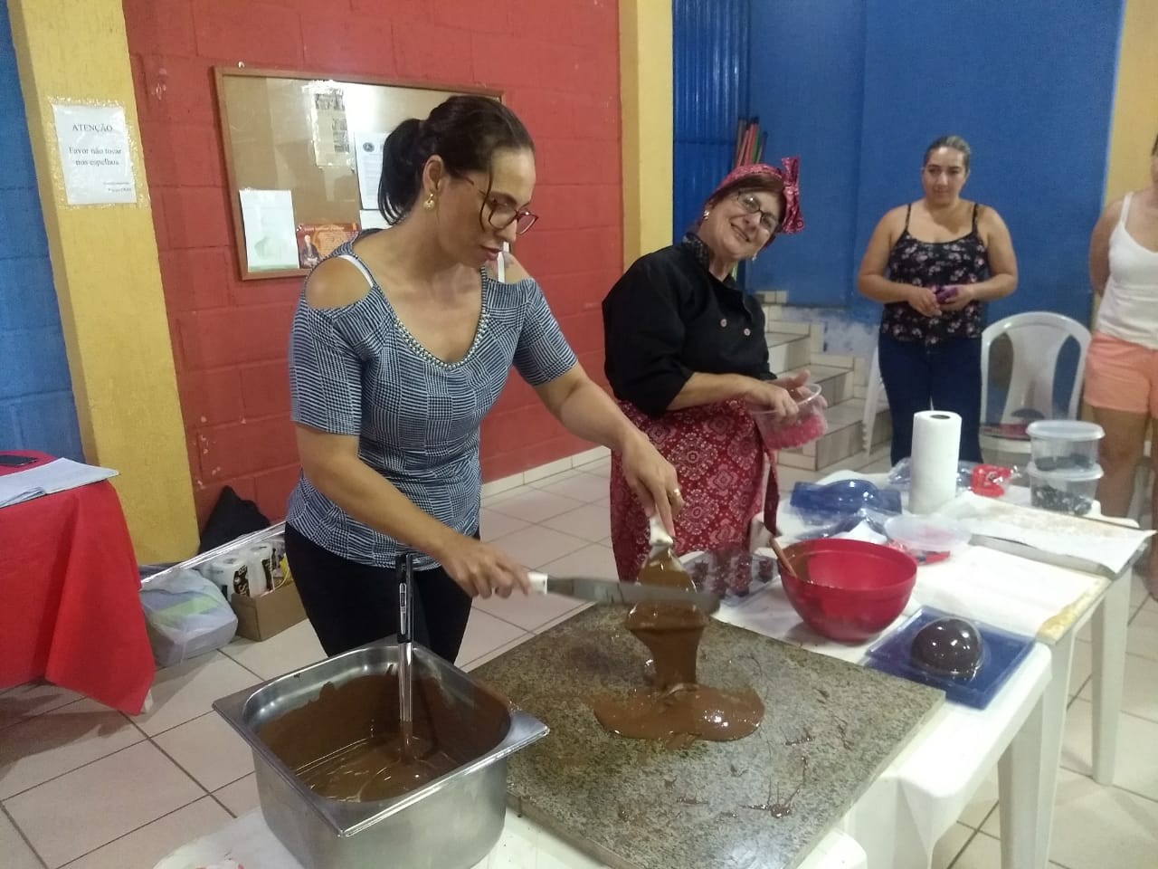 A Oficina tem como objetivo dar oportunidades de formas de renda as famílias, além de desenvolver um ambiente de convivência e troca de experiências. O trabalho foi realizado no espaço de convivência e teve como monitora a culinarista Cleonice Batista, a Nice Bolo Decorado.