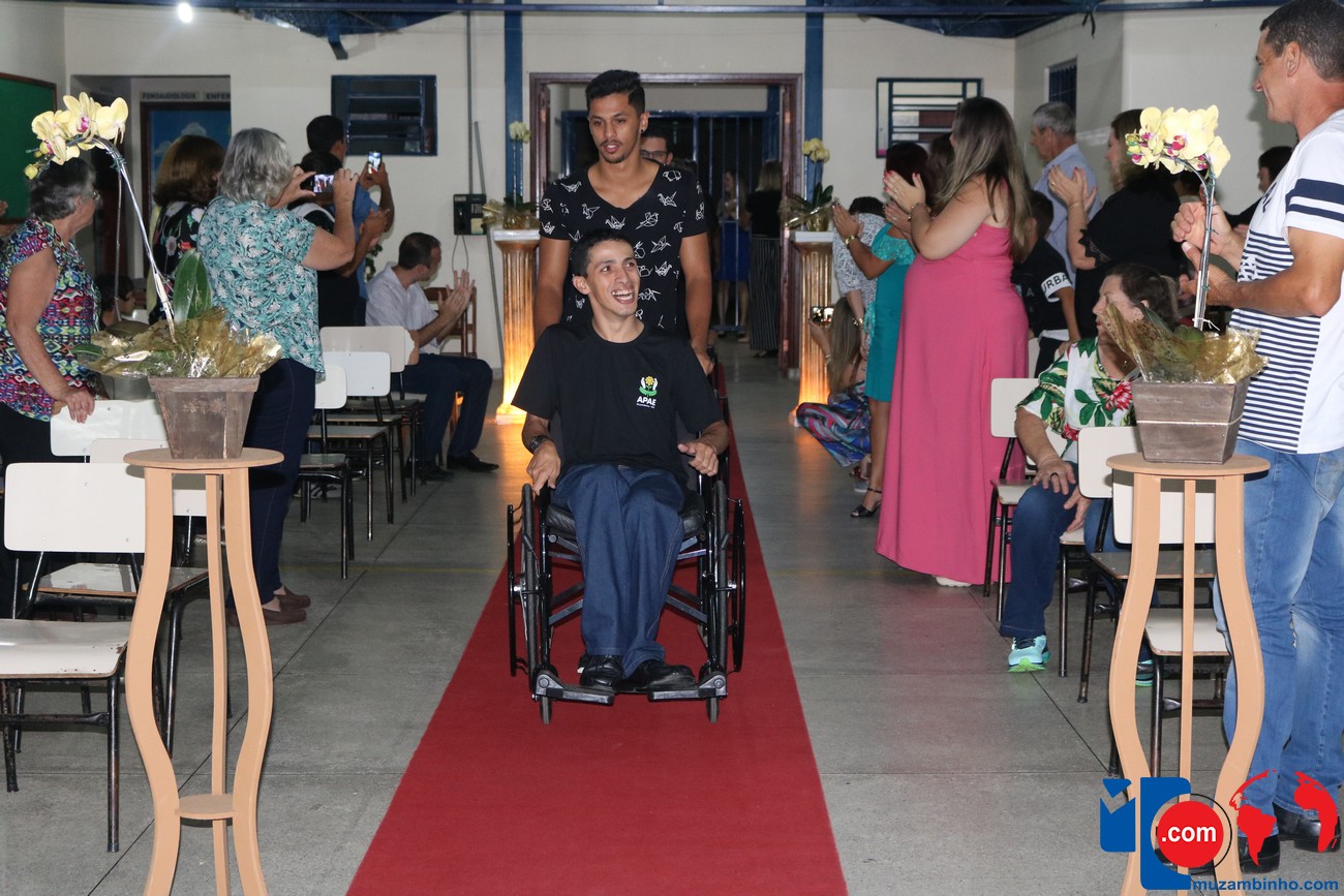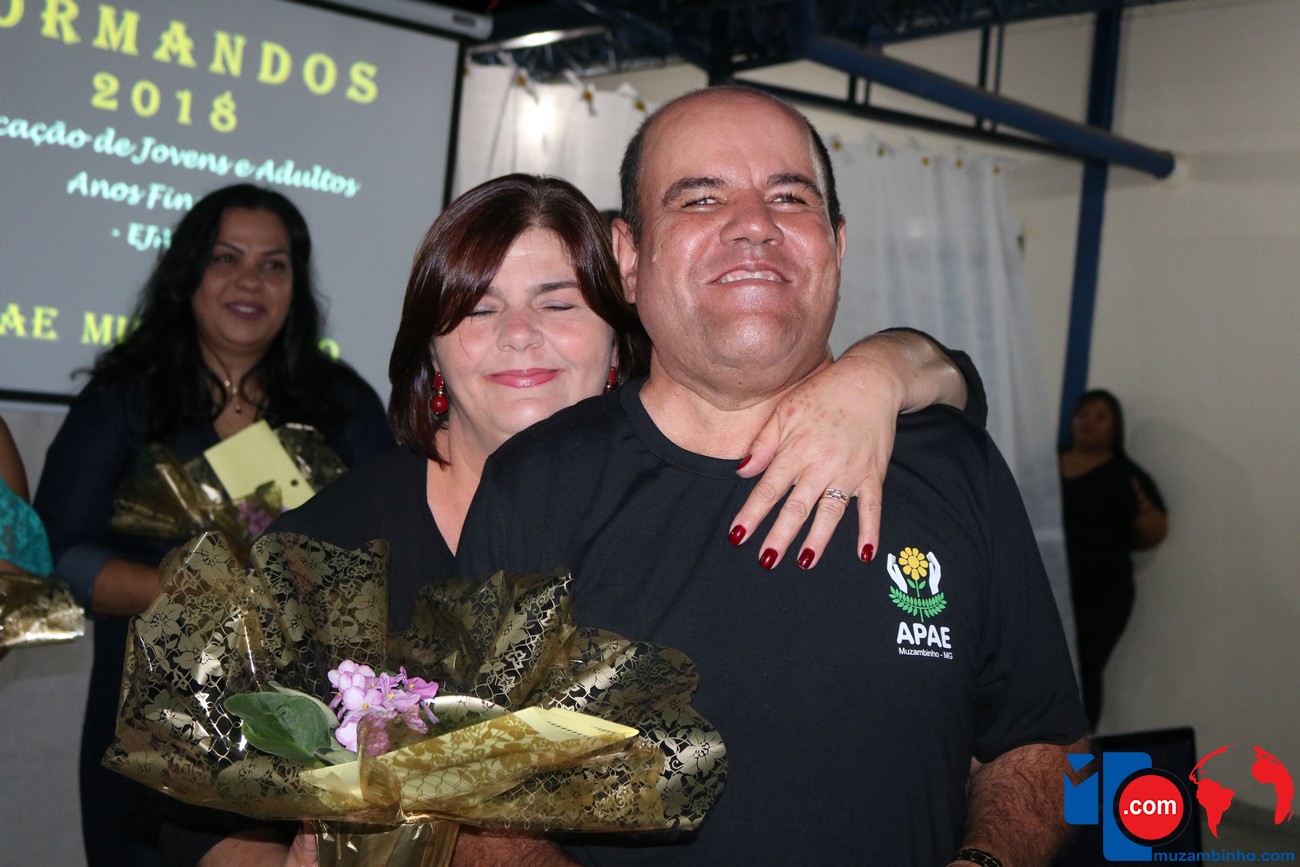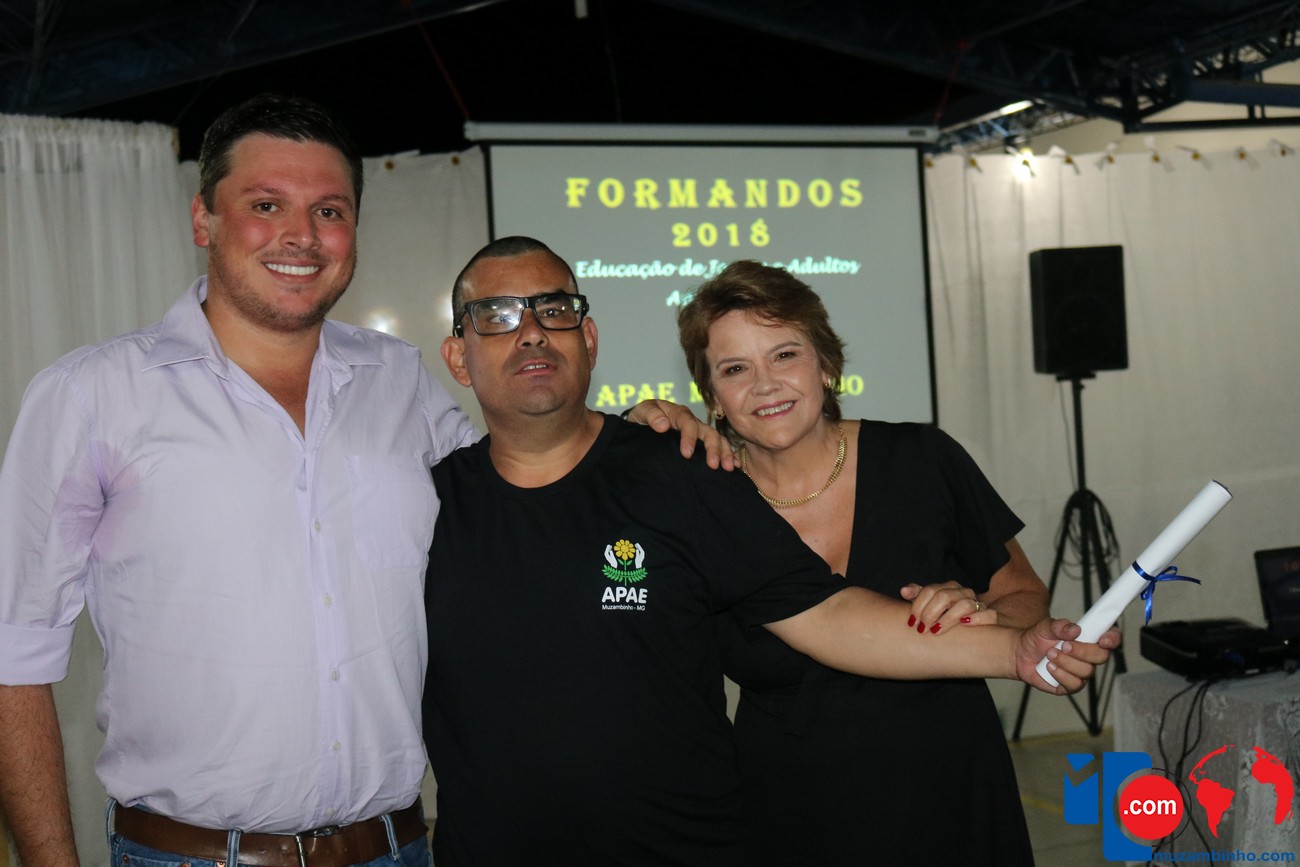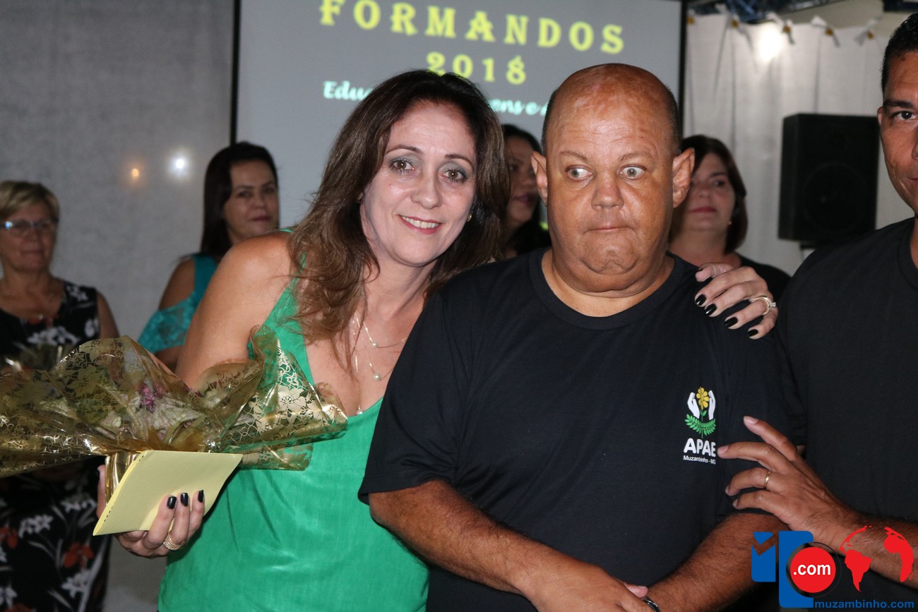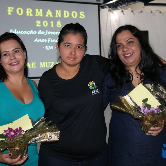Para celebrar a conquista foi realizada uma lindíssima formatura, a solenidade que aconteceu na sede da instituição, nesta sexta-feira, 12/04, e contou com a presença de familiares dos formandos, diretoria, professores e funcionários, o Prefeito Sérgio “Esquilo”, também esteve presente e ressaltou sua alegria em participar deste momento. A noite foi de gala para os convidados e formandos, os alunos são da Educação de Jovens e Adultos Anos Finais – 2018, EJA, da APAE, Associação de Pais e Amigos dos Excepcionais de Muzambinho.