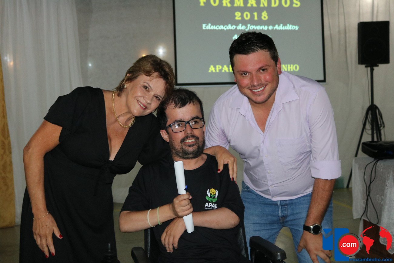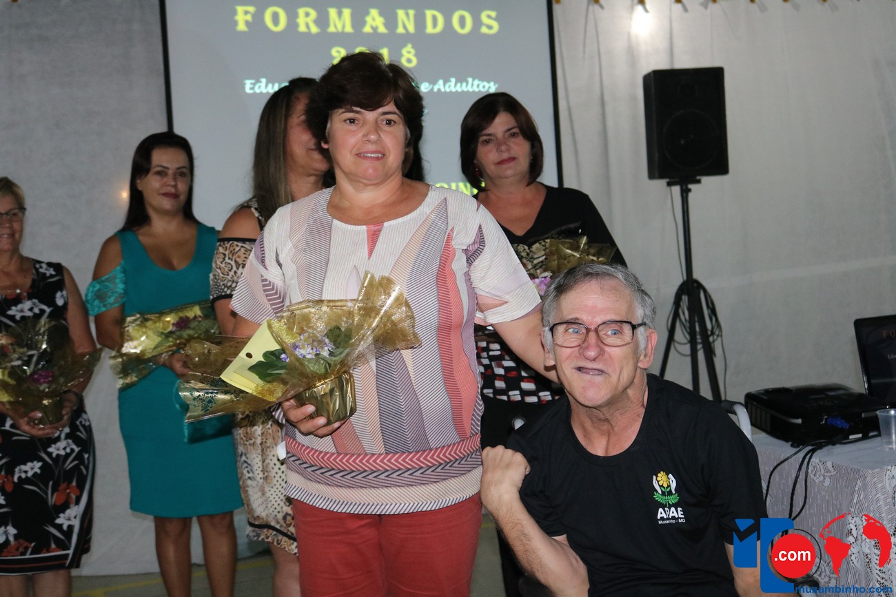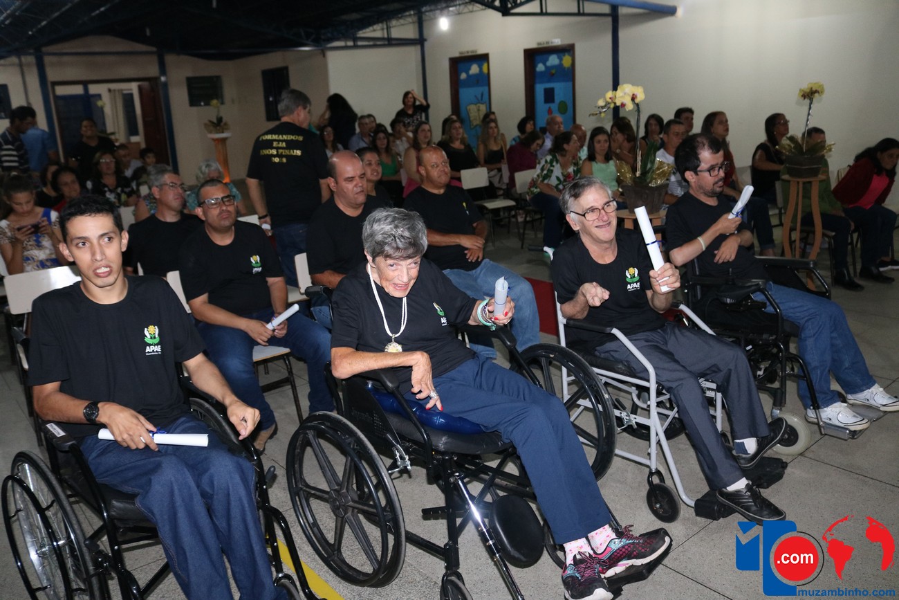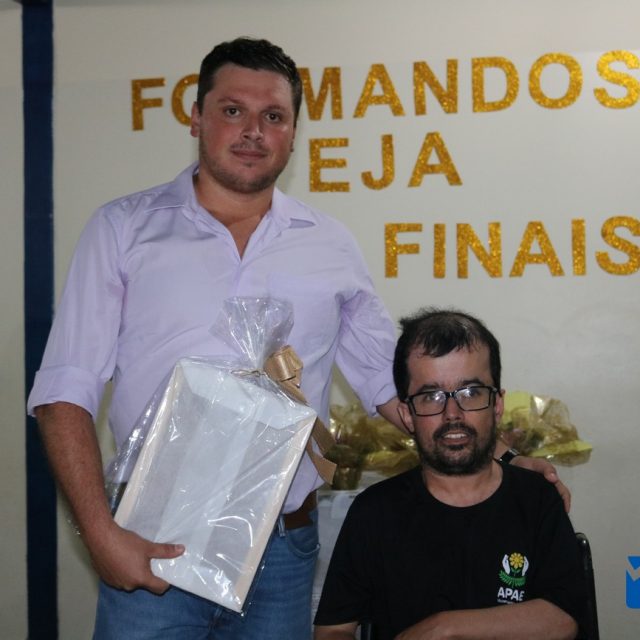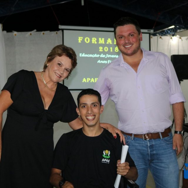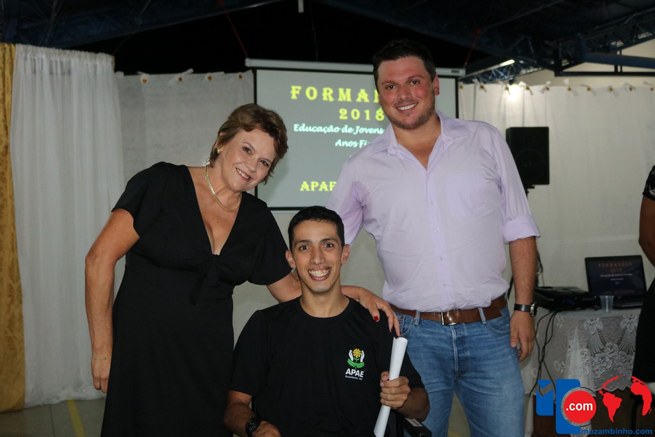 Para celebrar a conquista foi realizada uma lindíssima formatura, a solenidade que aconteceu na sede da instituição, nesta sexta-feira, 12/04, e contou com a presença de familiares dos formandos, diretoria, professores e funcionários, o Prefeito Sérgio “Esquilo”, também esteve presente e ressaltou sua alegria em participar deste momento. A noite foi de gala para os convidados e formandos, os alunos são da Educação de Jovens e Adultos Anos Finais – 2018, EJA, da APAE, Associação de Pais e Amigos dos Excepcionais de Muzambinho.