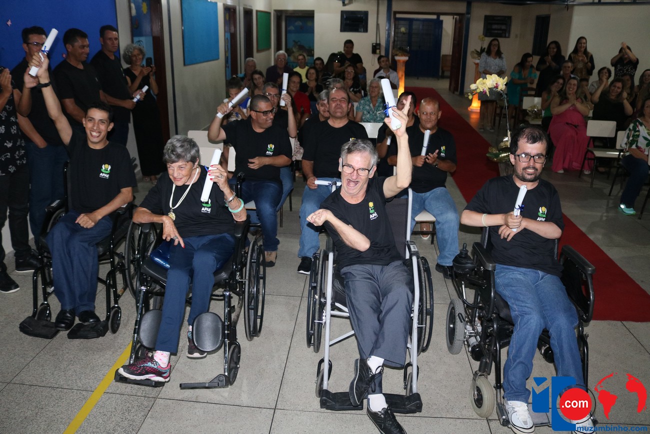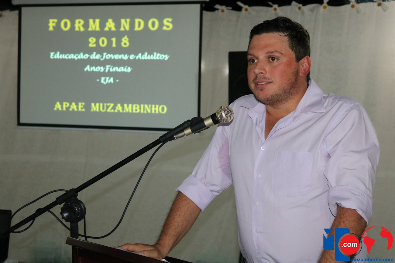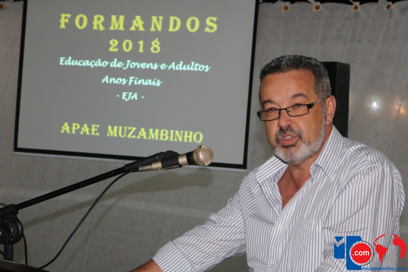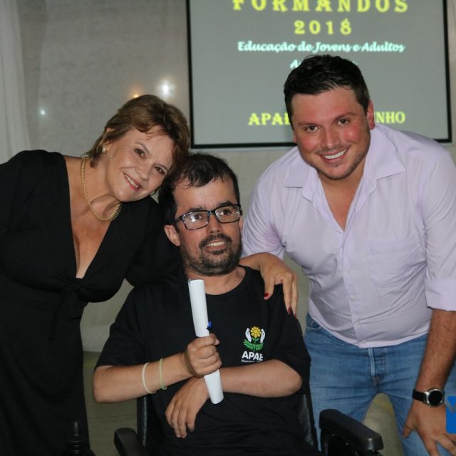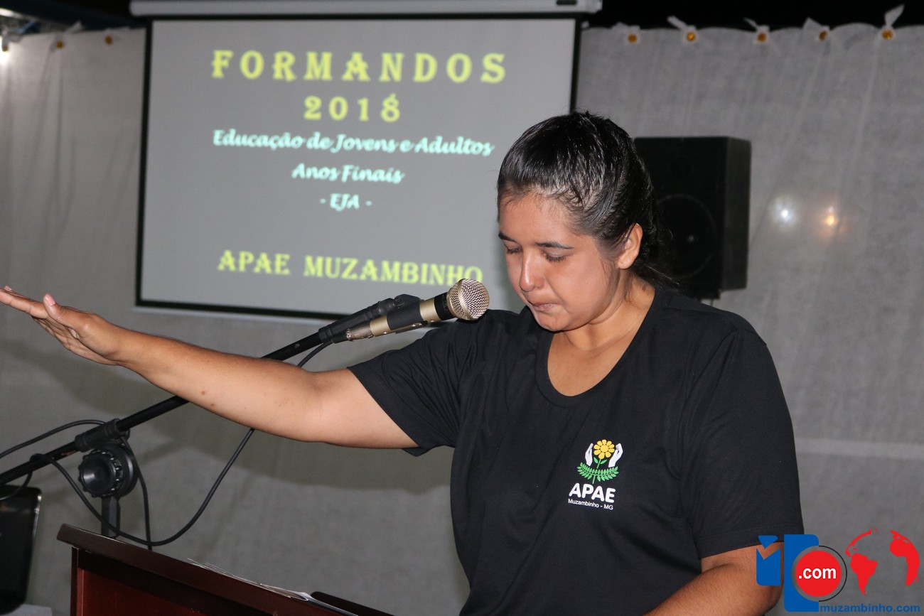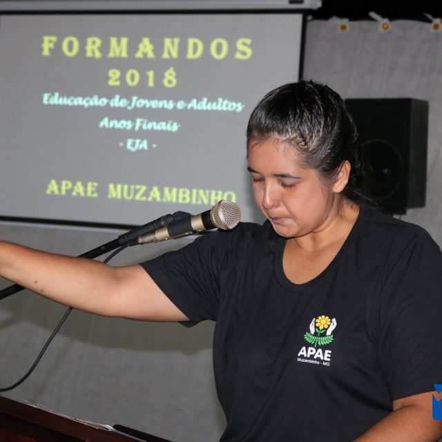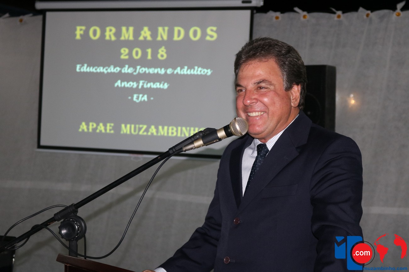 Para celebrar a conquista foi realizada uma lindíssima formatura, a solenidade que aconteceu na sede da instituição, nesta sexta-feira, 12/04, e contou com a presença de familiares dos formandos, diretoria, professores e funcionários, o Prefeito Sérgio “Esquilo”, também esteve presente e ressaltou sua alegria em participar deste momento. A noite foi de gala para os convidados e formandos, os alunos são da Educação de Jovens e Adultos Anos Finais – 2018, EJA, da APAE, Associação de Pais e Amigos dos Excepcionais de Muzambinho.
