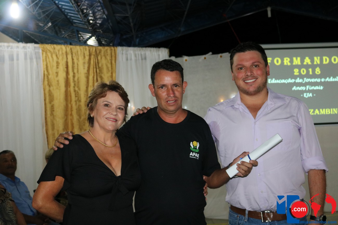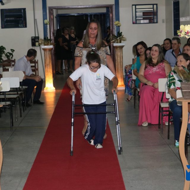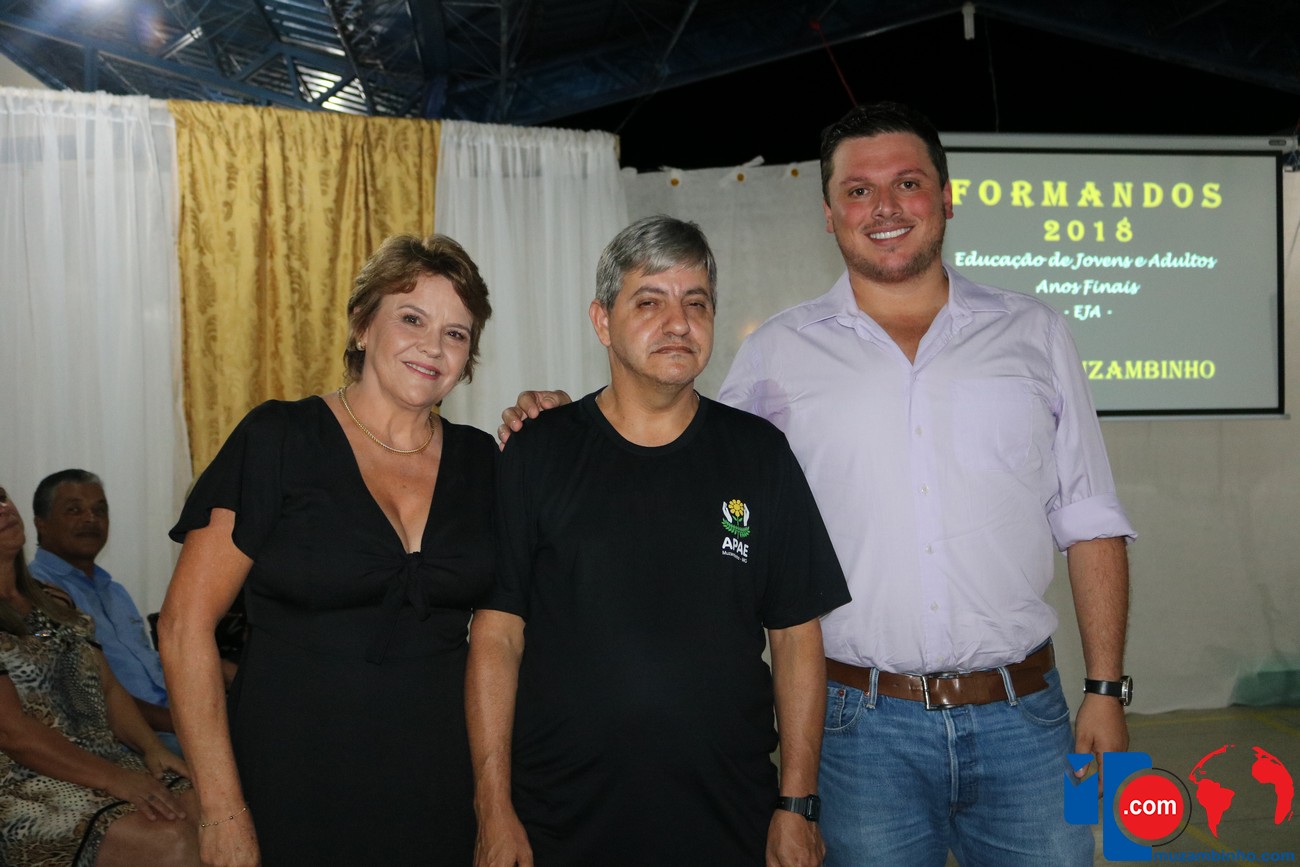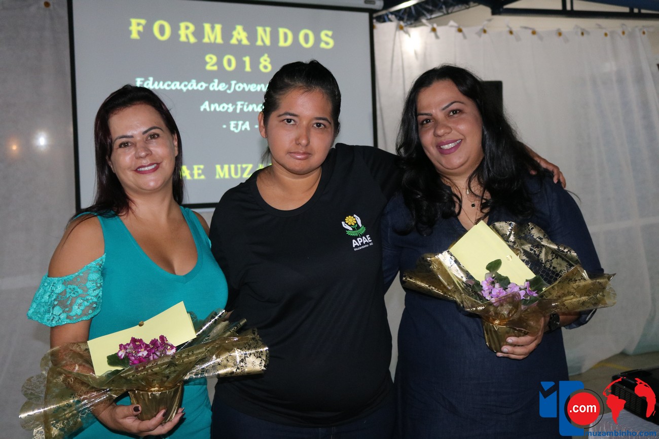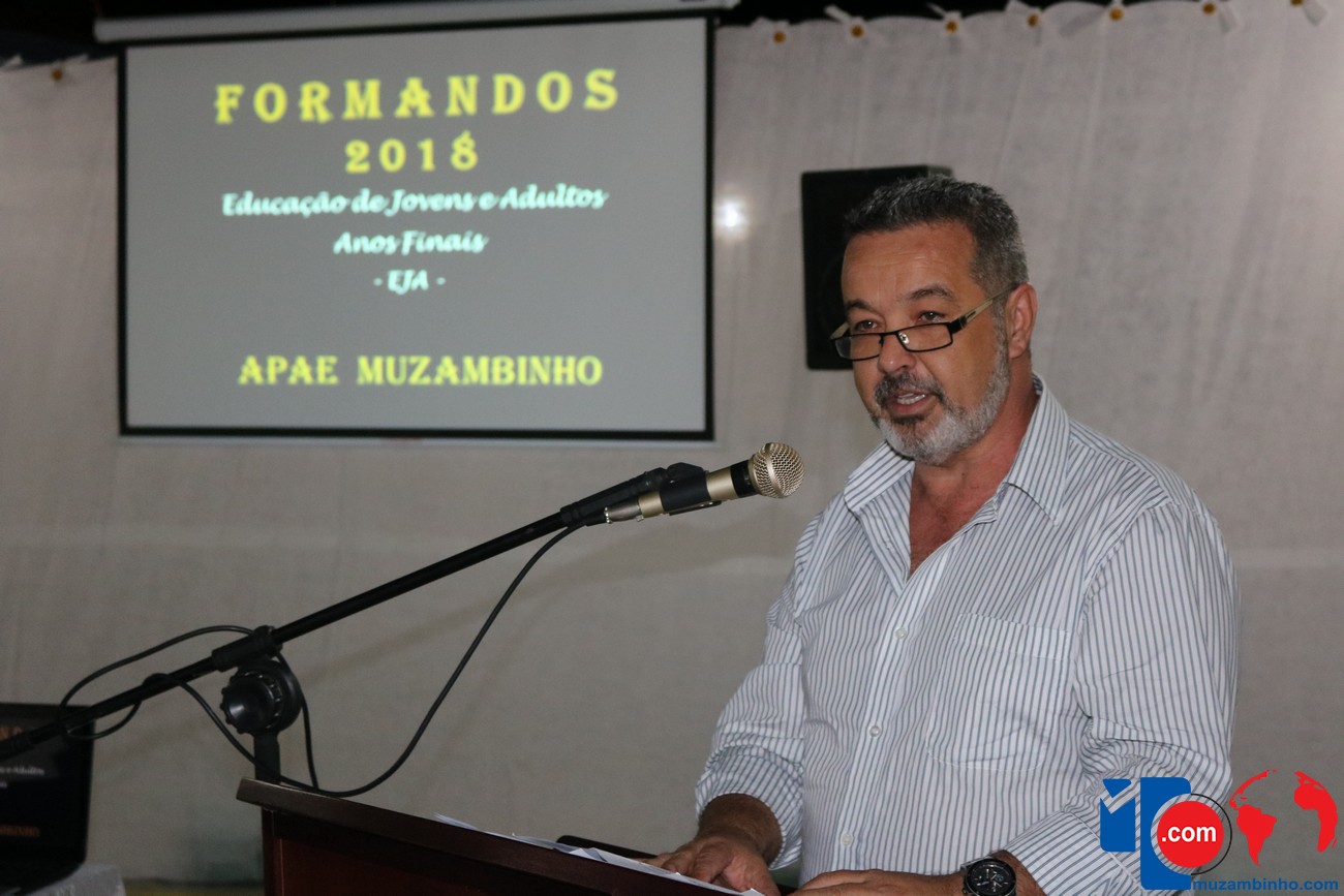 Para celebrar a conquista foi realizada uma lindíssima formatura, a solenidade que aconteceu na sede da instituição, nesta sexta-feira, 12/04, e contou com a presença de familiares dos formandos, diretoria, professores e funcionários, o Prefeito Sérgio “Esquilo”, também esteve presente e ressaltou sua alegria em participar deste momento. A noite foi de gala para os convidados e formandos, os alunos são da Educação de Jovens e Adultos Anos Finais – 2018, EJA, da APAE, Associação de Pais e Amigos dos Excepcionais de Muzambinho.