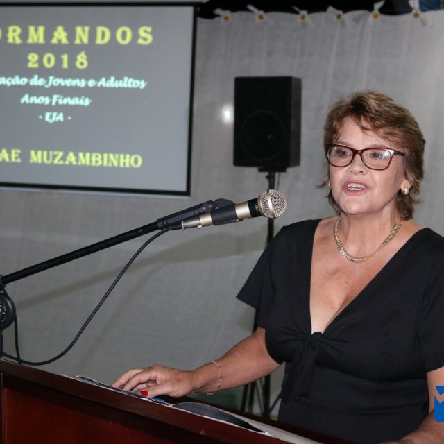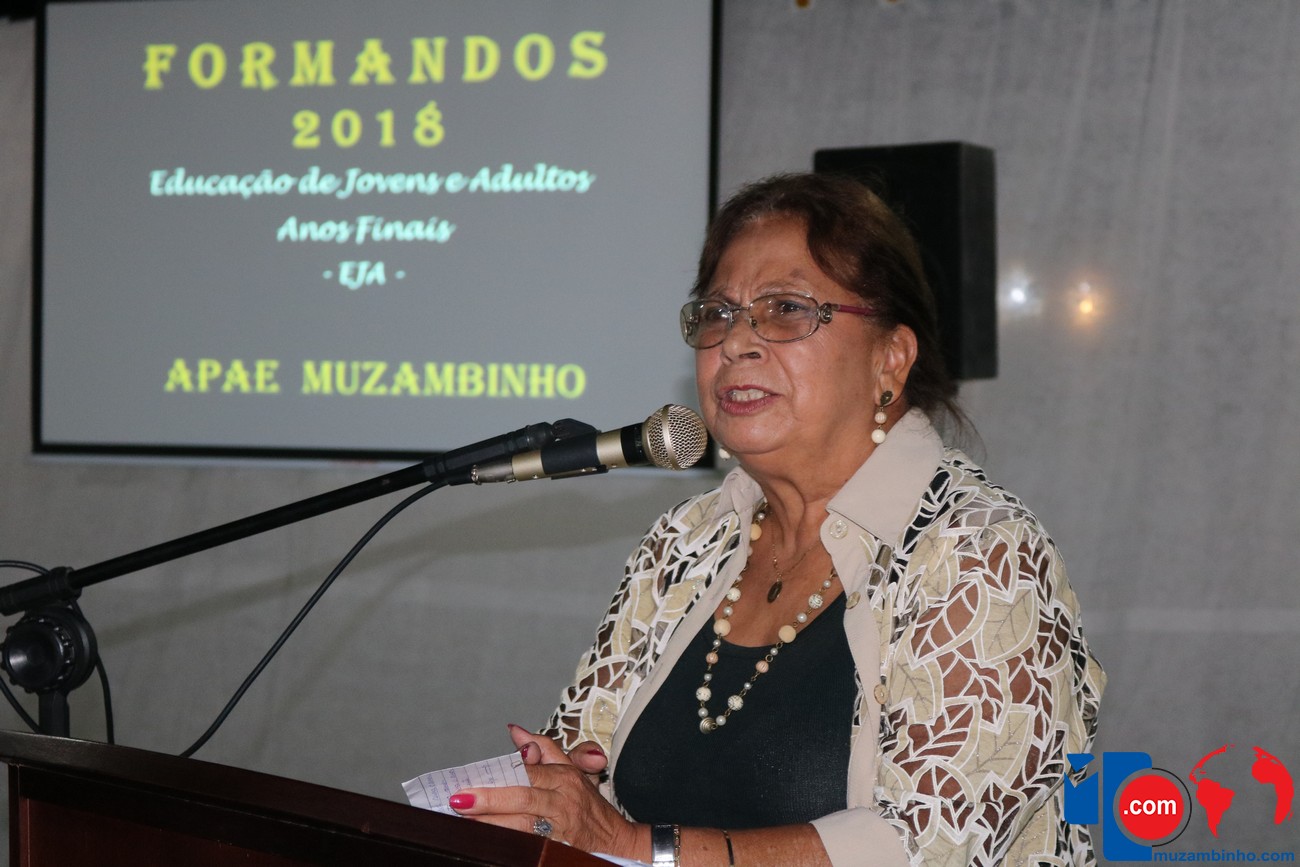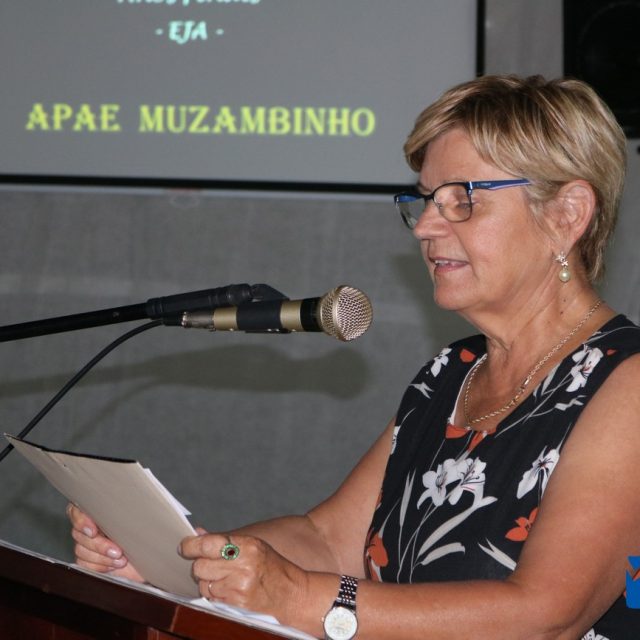 Irene Silva, representando as famílias, que fez uma bela homenagem aos funcionários, professores e formandos lembrou a importância de cada pequeno gesto de acolhida “meu neto é uma pessoas mais feliz por poder frequentar as atividades que são realizadas aqui”.