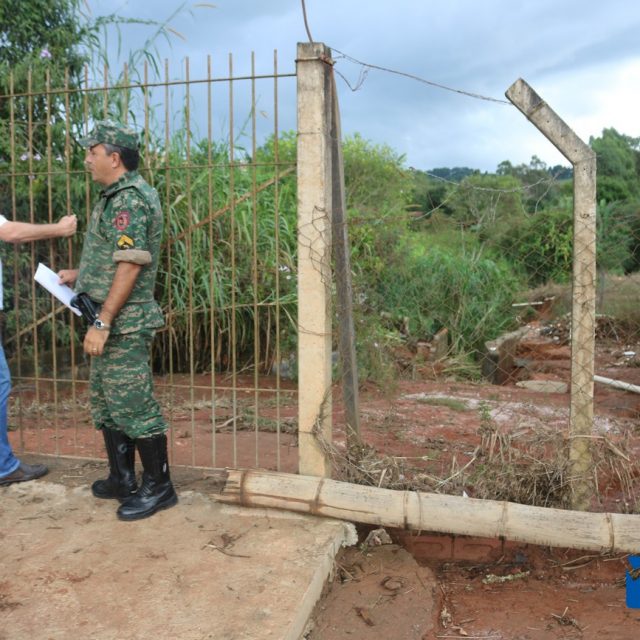 Na visita aos bairros, o Prefeito foi acompanhado por Policiais do Meio Ambiente e Assessores, além da imprensa que registrou a visita aos moradores e locais atingidos.