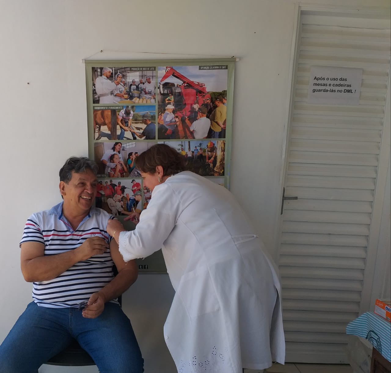 O acolhimento ofertado a equipe foi algo emocionante, transformaram a sede do escritório em consultório médico e de enfermagem, pois a gestão compreende a importância do seu trabalhador com assistência à saúde e executando suas tarefas com o bem estar. A Equipe se sentiu lisonjeada pela atitude da proprietária Carmen e sua equipe pelo carinho ofertado, a satisfação de cada um que estava na colheita do café e foram atendidos nesta unidade de saúde móvel. Os olhares dos trabalhadores e a satisfação do cuidar foi algo marcante, foi realizada a triagem inicial, consulta médica, aferições de sinais vitais, vacinação contra gripe, orientação e conduta.