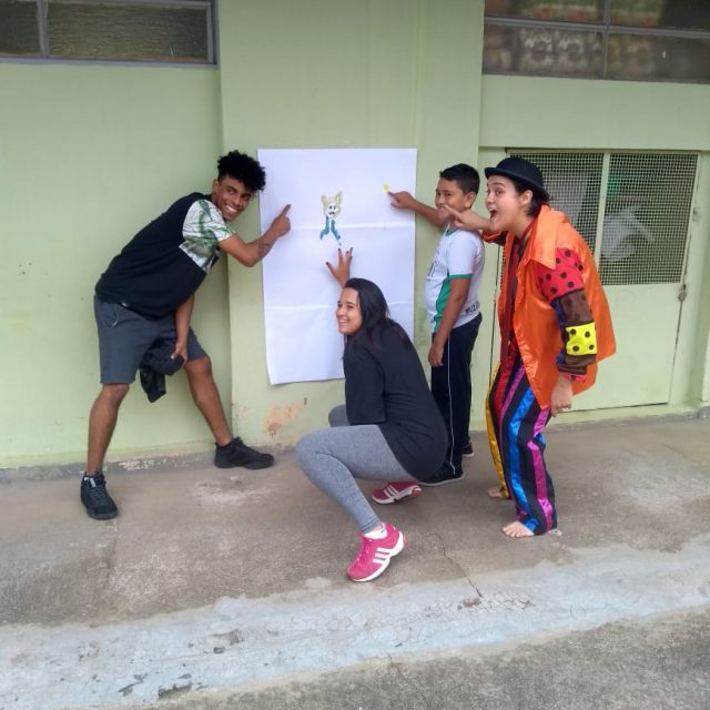 Erika Evangelista, junto à Secretaria de Cultura, é responsável pela adaptação dos conteúdos para peças de teatro.”Fazemos uma leitura lúdica do conteúdo da apostila, nesta etapa estamos trabalhando com os diferentes ritmos musicais, incluímos também jogos que ajudam as crianças a fixarem o conteúdo brincando,” explica a professora Aparecida Figueiredo (Beza).