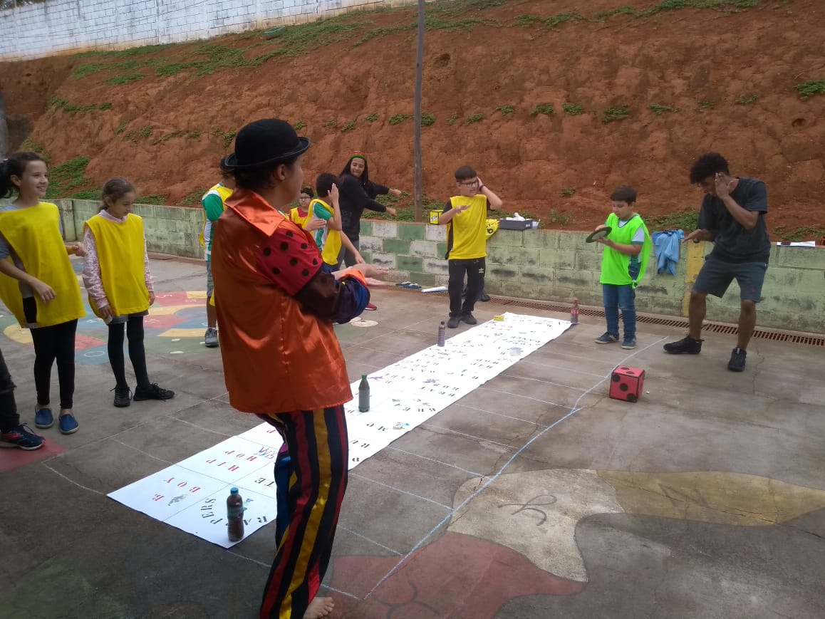 Erika Evangelista, junto à Secretaria de Cultura, é responsável pela adaptação dos conteúdos para peças de teatro.”Fazemos uma leitura lúdica do conteúdo da apostila, nesta etapa estamos trabalhando com os diferentes ritmos musicais, incluímos também jogos que ajudam as crianças a fixarem o conteúdo brincando,” explica a professora Aparecida Figueiredo (Beza).
