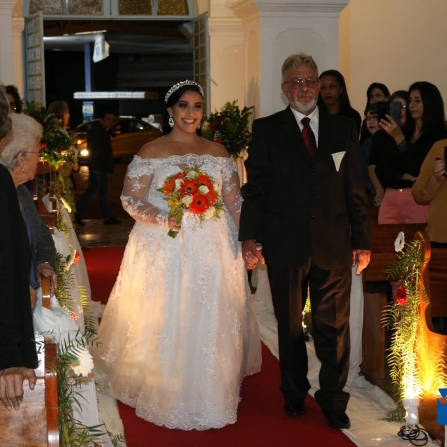 Os noivos vestiram uma das várias opções da Cirlene Noivas.