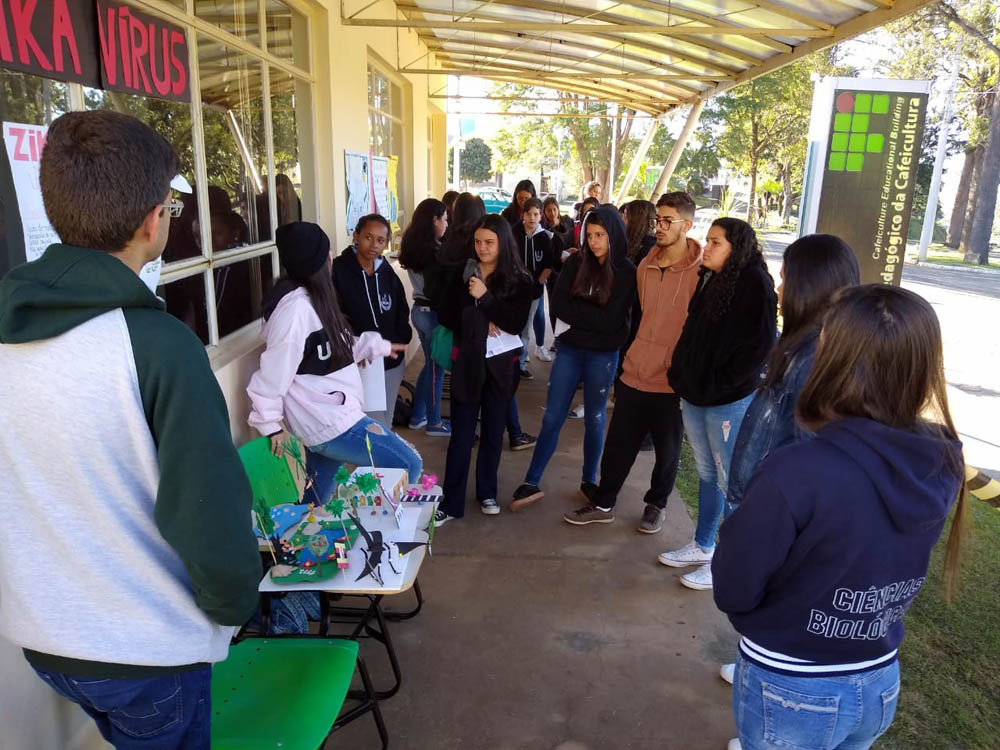 Nos dias 10 e 11/06 os discentes do curso de Ciências Biológicas, integrantes do projeto PIBID – Biologia, apresentaram no prédio H e no prédio da cafeicultura, para os alunos do Ensino Técnico Integrado, feira sobre os temas: Dengue, Zika e Chikungunya. O objetivo da feira foi, de maneira lúdica, informar os alunos sobre o que são essas doenças, transmissão, principais sintomas e prevenção.