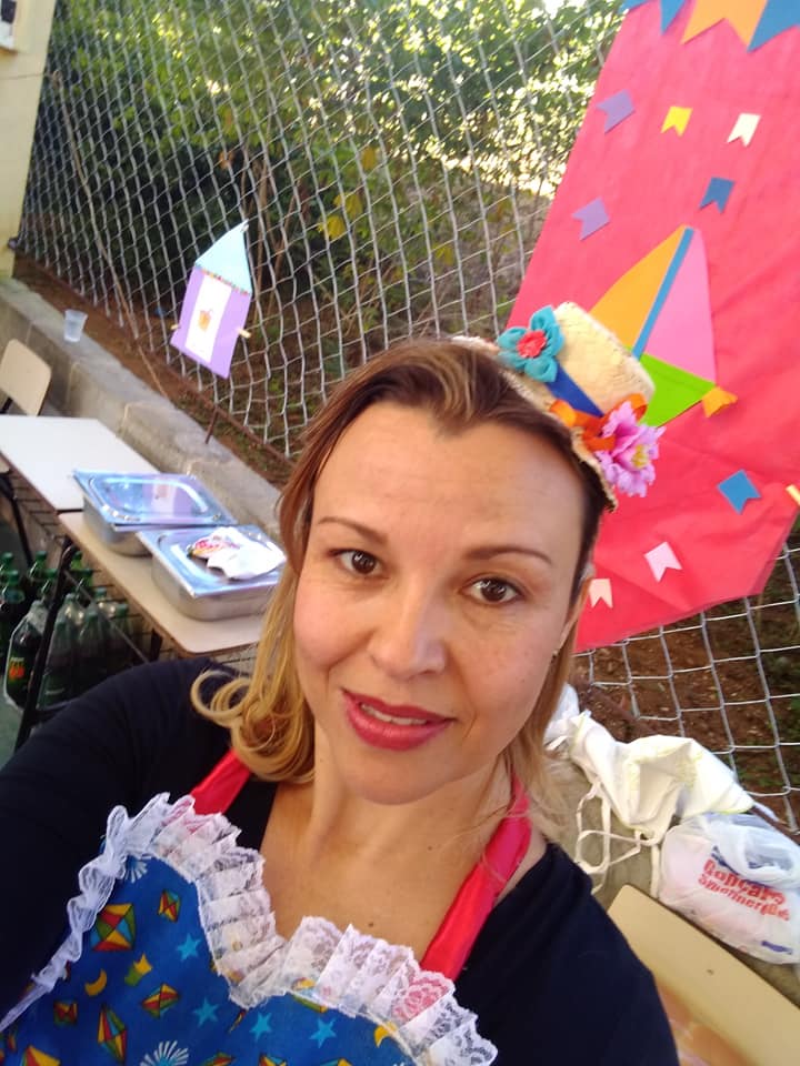 Este ano a comemoração foi na quadra da escola que foi toda decorada com motivos juninos e muitas bandeirinhas.