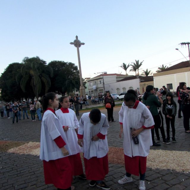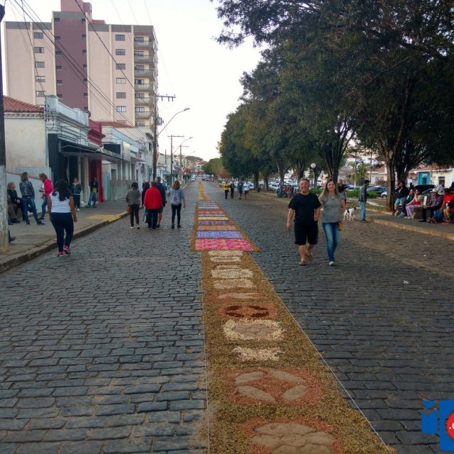 Durante o dia os fiéis se dedicaram a confecção dos tapetes que já é tradição dos católicos pelas ruas das cidades, em Muzambinho a Missa e Procissão acontece no final do dia, percorrendo o trajeto que foi demarcado com os tapetes decorando as ruas por onde a procissão deve passar.