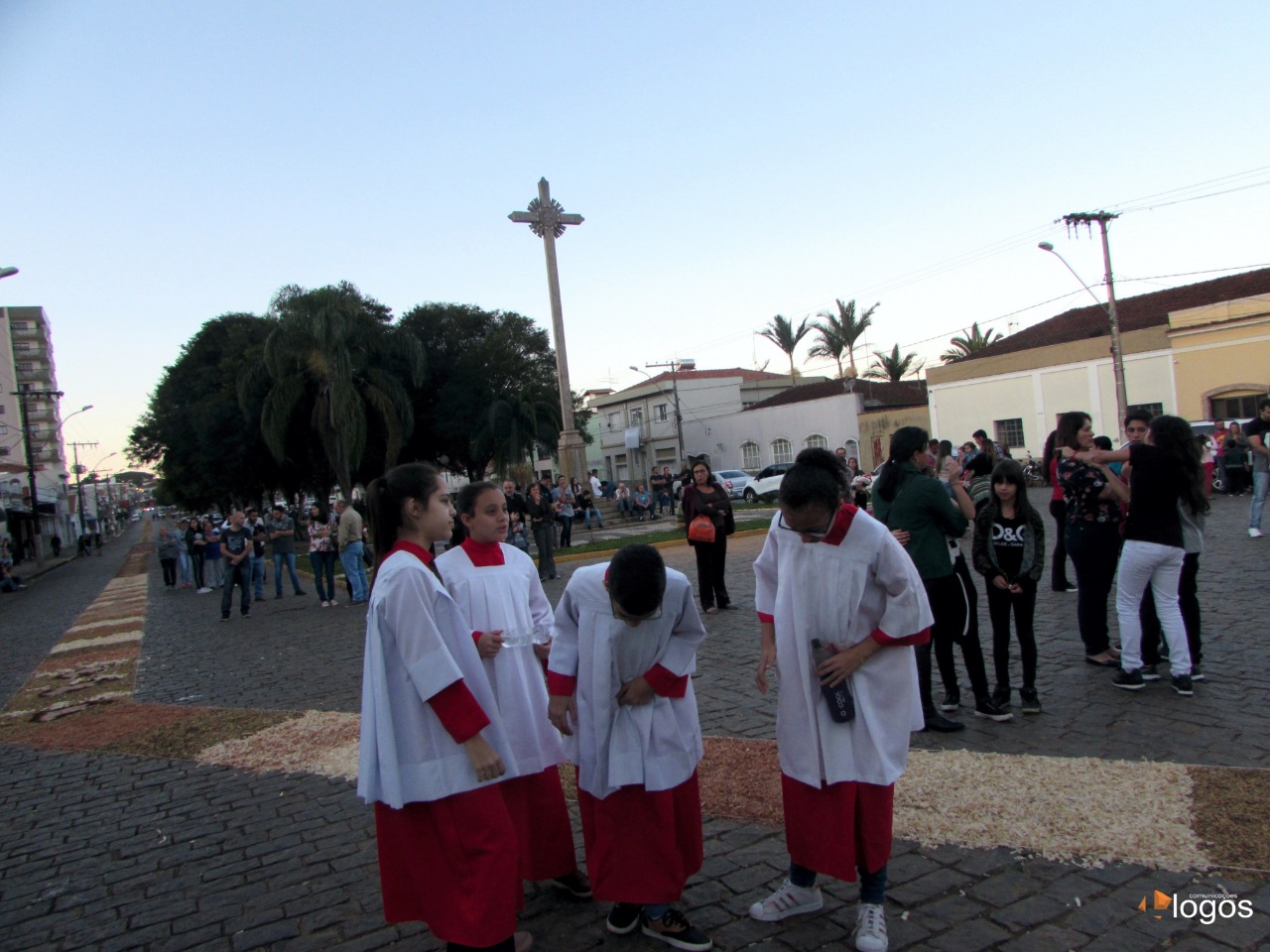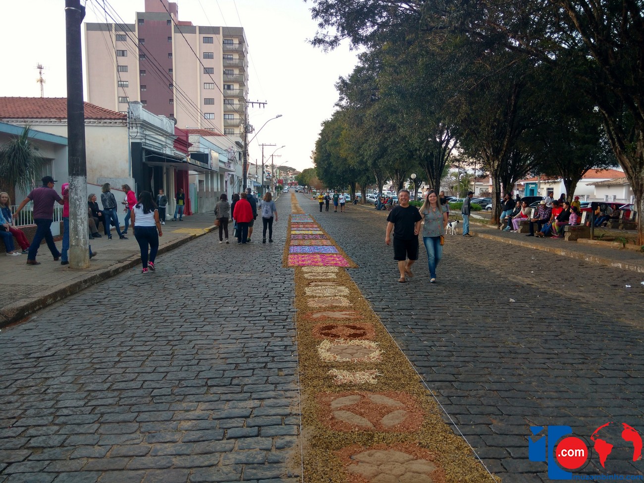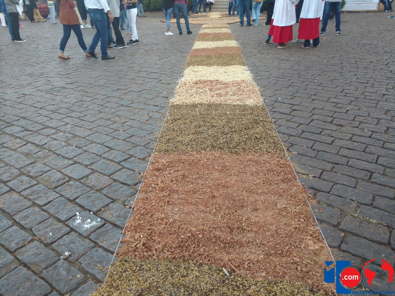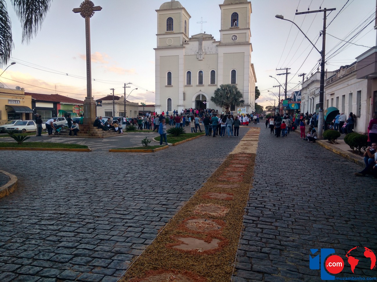 Durante o dia os fiéis se dedicaram a confecção dos tapetes que já é tradição dos católicos pelas ruas das cidades, em Muzambinho a Missa e Procissão acontece no final do dia, percorrendo o trajeto que foi demarcado com os tapetes decorando as ruas por onde a procissão deve passar.