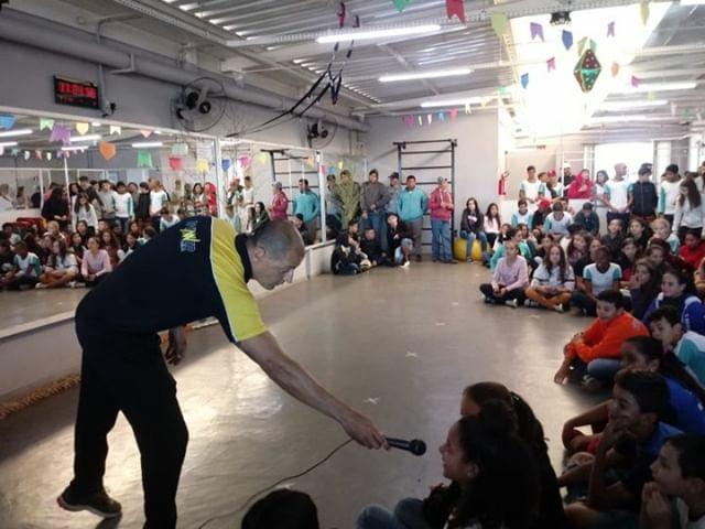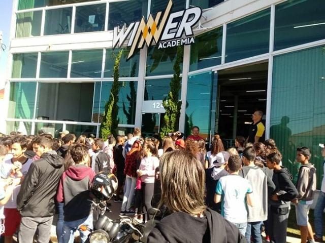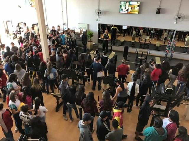 “Na última terça-feira (25/06) tivemos o prazer em receber e apresentar a academia aos alunos da escola Cesário Coimbra. Como parte do encerramento da campanha de prevenção às drogas, os alunos participaram de aulas de fitness e lutas e assistiram uma palestra sobre a importância da atividade física ministrada pelo professor Paulinho.”