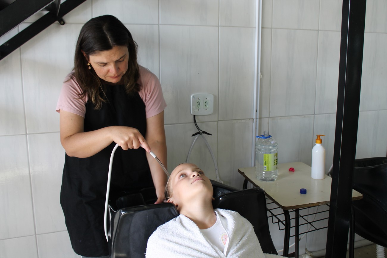 Atendemos uma demanda grande de profissionais que nos procuram para cursos de aperfeiçoamento, temos também as demandas das população que precisa de corte e tentamos atender a todos, também realizamos ações como o dia de beleza no Lar São Vicente, uma forma prática de contato com os clientes, uma vivencia da profissão para as alunas, explica Débora Bueno , coordenadora da casa do empreendedor.