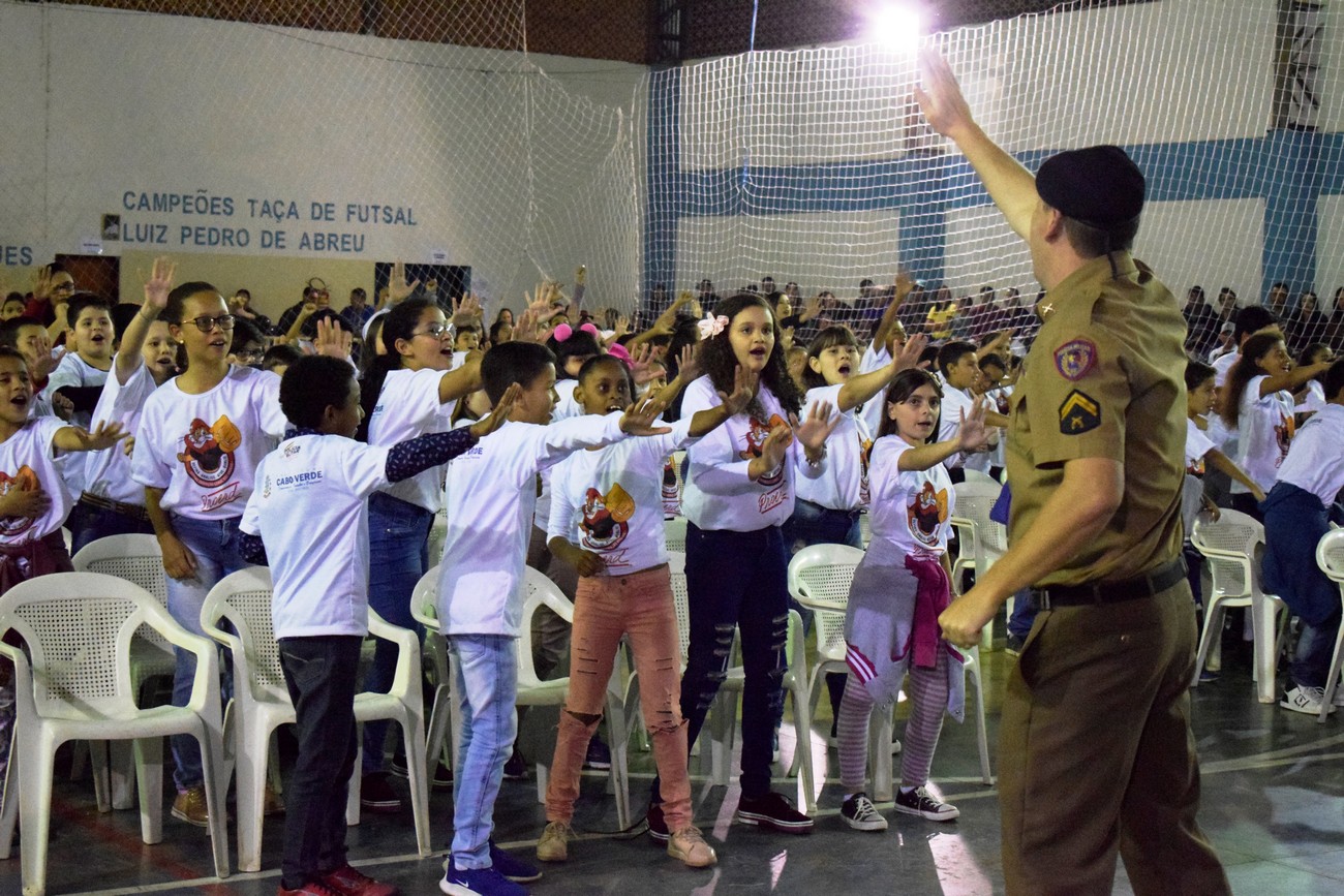 O evento contou com a participação do Sr. Cap PM Jader Augusto de Oliveira Silva, Cmt da 242ª Cia PM, do 1º Ten Sandro Olímpio de Lima Almeida, Cmt do 3º Pelotão PM de Cabo Verde, da Sra. Stella Maris Souza Andrade Congiu, Secretária Municipal de Educação, que representou o Prefeito Municipal, do Vereador Adriano Lange Dias, que representou a Câmara Municipal, da Sra. Amanda Abílio, representando o Conselho Tutelar de Cabo Verde, além dos alunos, professores, pais, Policiais Militares e foi abrilhantado pela Banda de Música da 18ª Região da Polícia Militar.