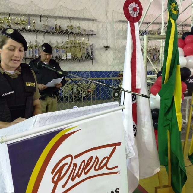 O PROERD foi ministrado pelos Instrutores Policiais Militares Cb PM Irlan César Graciano e Cb PM Élio José do Nascimento Júnior, com aulas semanais, durante o primeiro semestre de 2019, tendo o ápice a Formatura dos alunos, que teve ainda a participação especial do mascote do PROERD, o leão “DAREN”, o qual animou a festa e divertiu as crianças e o público presente.