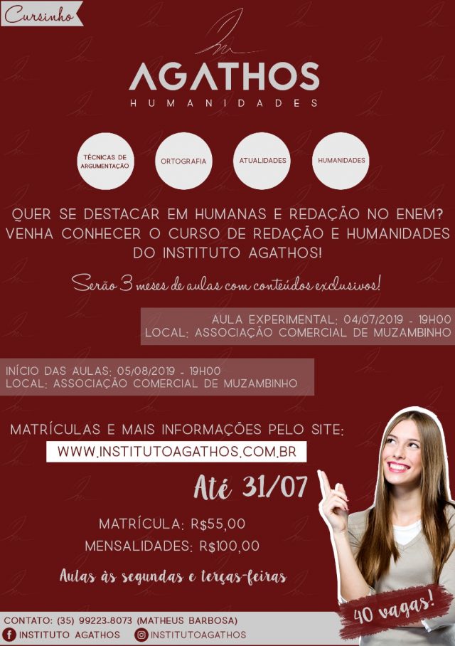 Sorteio – Instituto Agathos – Curso de Humanidades e Redação para o Enem…