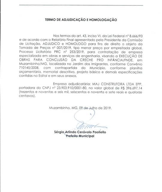 Prefeitura faz Tomada de Preço para conclusão da Creche do Jardim dos Imigrantes.