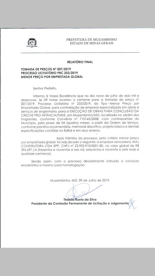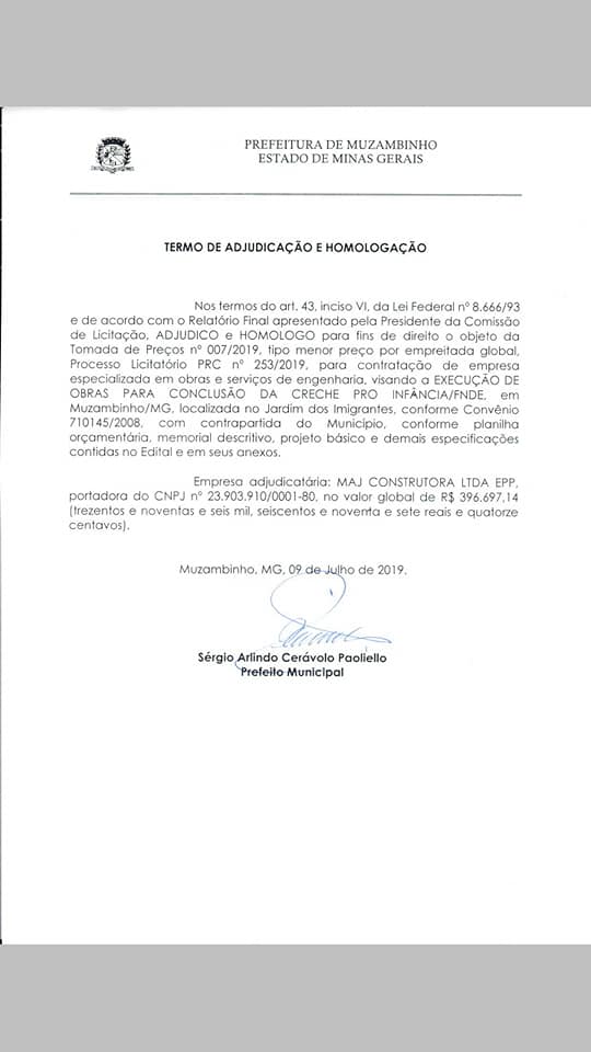 Prefeitura faz Tomada de Preço para conclusão da Creche do Jardim dos Imigrantes.