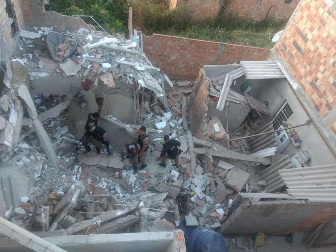 Segundo o Corpo de Bombeiros, dois adultos estão presos sob os escombros do imóvel