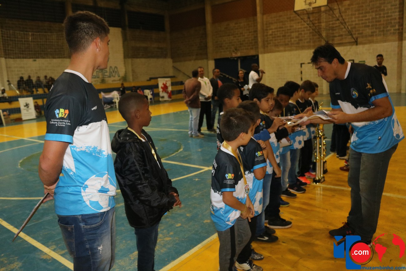Neste sábado, 03/08, para abrilhantar ainda mais a festa de encerramento do Campeonato Municipal de Futsal 2019 em Muzambinho, a Secretaria de Esportes, Lazer e Cultura de nossa cidade homenageou os atletas da categoria de bases, Escola Muzambinho, sub-9 e sub-11 que participaram no final de julho da Copa Futuros Craques em Pouso Alegre e garantiram troféus para a nossa cidade.