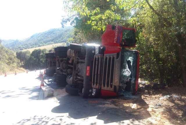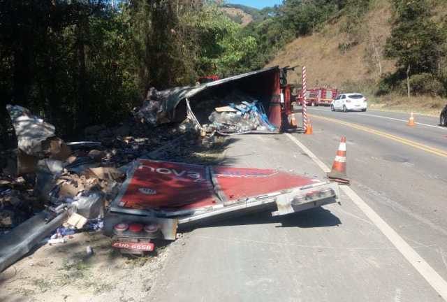 A carreta transportava uma carga de desodorantes em aerosol. O Corpo de Bombeiros foi acionado para conter o risco de incêndio no local.