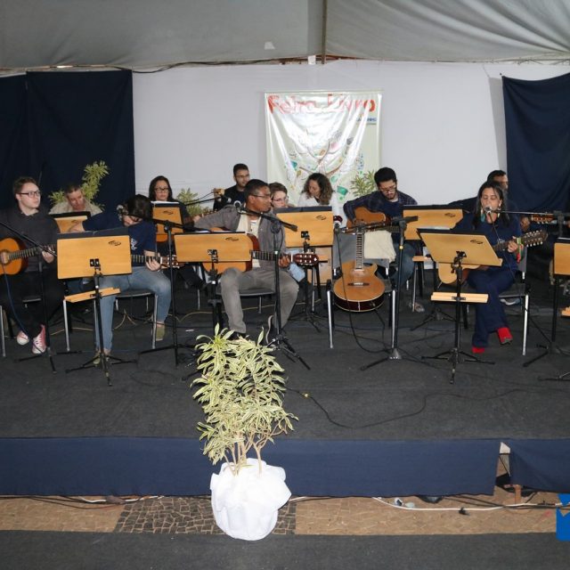 A noite de sexta na II Feira do Livro contou com a apresentação musical com a Orquestra de Viola e Violão da Universidade Federal de Alfenas – UNIFAL/MG.